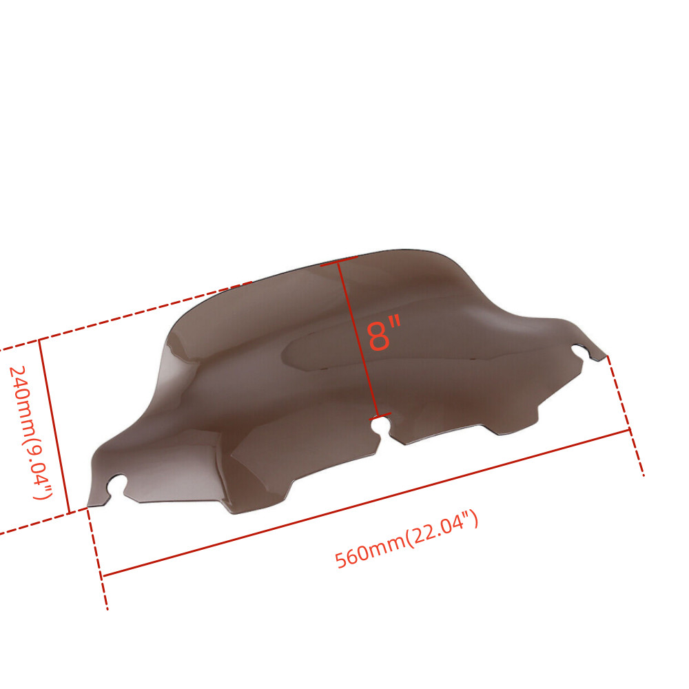 Specification: Fitment: 8" Wave Windshield Windscreen Compatible for 1996-2013 Harley Davidson Street Glide Electra Glide Ultra Classic Touring FLHT FLHTC FLHX Tri Glide About this item