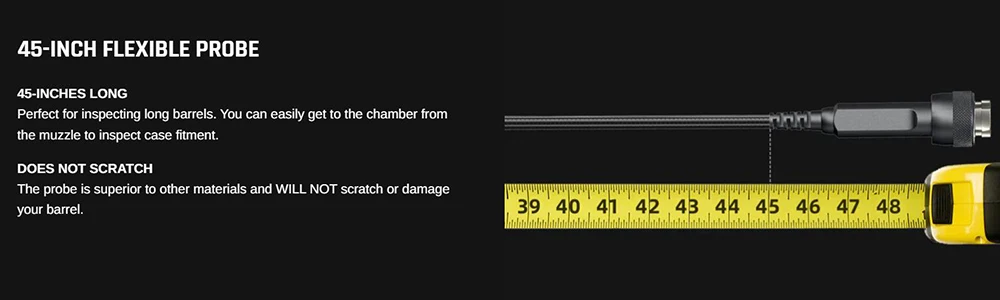 【FIT .20 CALIBER and LARGER 】- The 0.2-inch diameter probe allows easy entry into barrels as small as .20 caliber. The 10-inch-long rod is longer than most barrels so you do not need to switch from barrel to muzzle to fully inspect the bore.