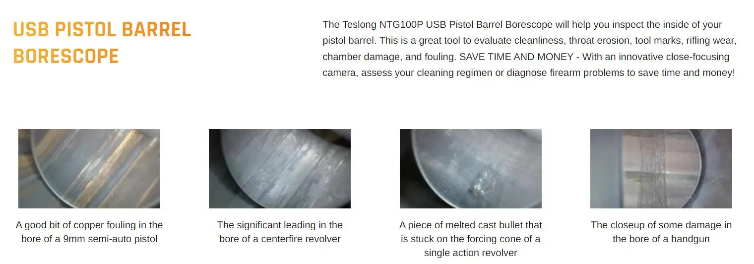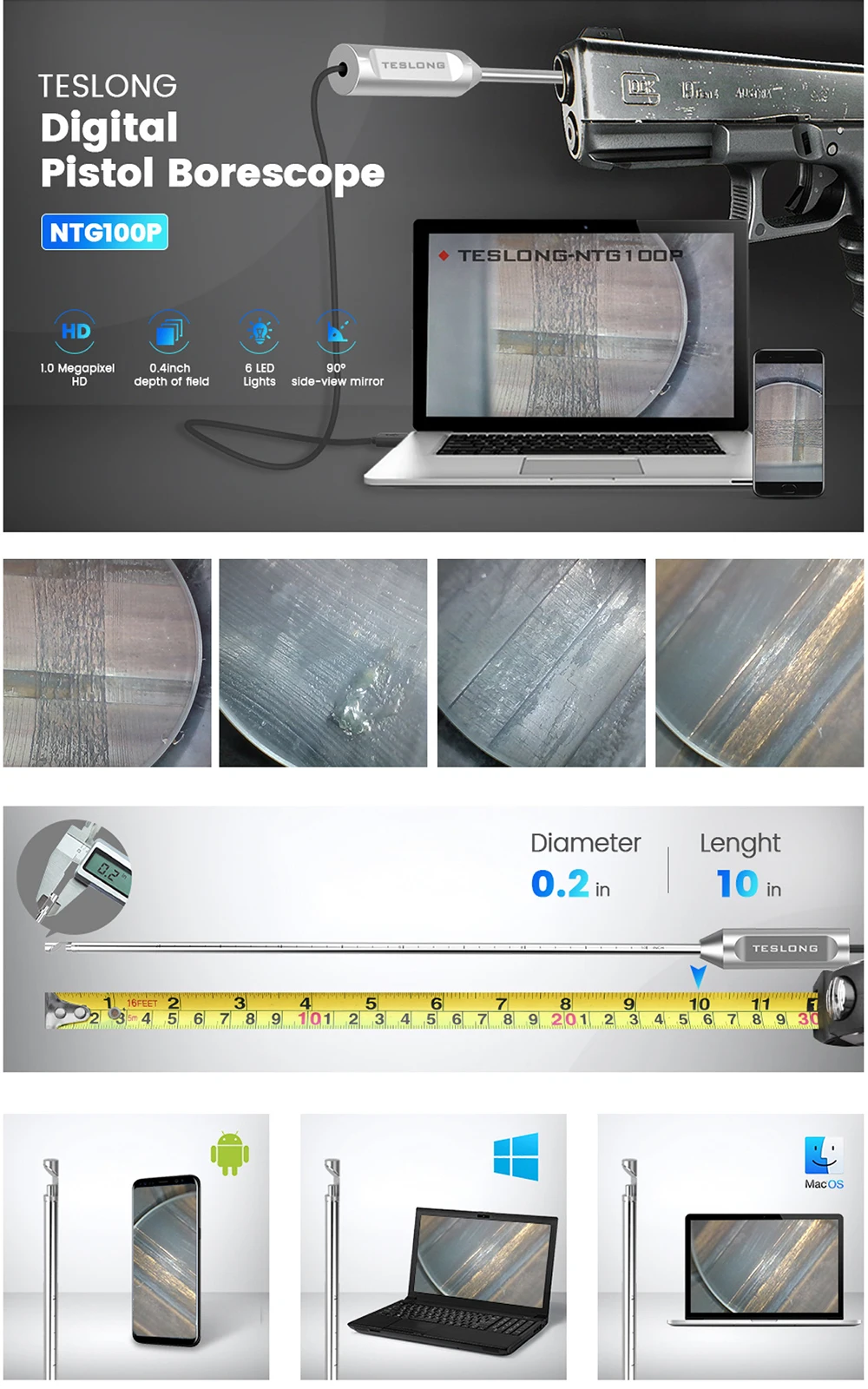 【SAVE TIME and MONEY】 - With an innovative close-focusing camera, this Teslong digital bore scope will help you inspect the inside of your barrel. This is a great tool to evaluate cleanliness, throat erosion, tool marks, rifling wear, chamber damage and fouling. Assess your cleaning regimen or diagnose firearm problems to SAVE time and money!
