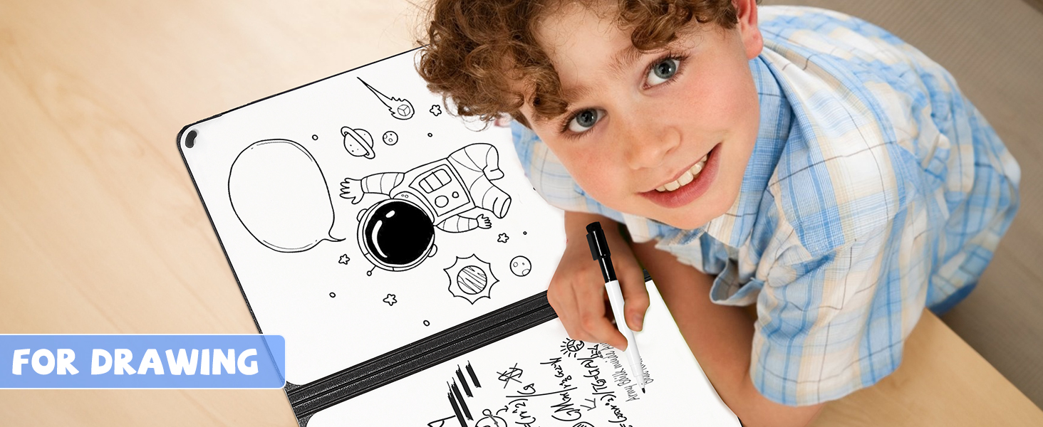 The inside of the white board writing page is supported by foam, the surface has a certain degree of softness, which is more comfortable for writing. The inner corners of the notebook are designed with silicone gaskets, to prevent writing from being erased when closing
