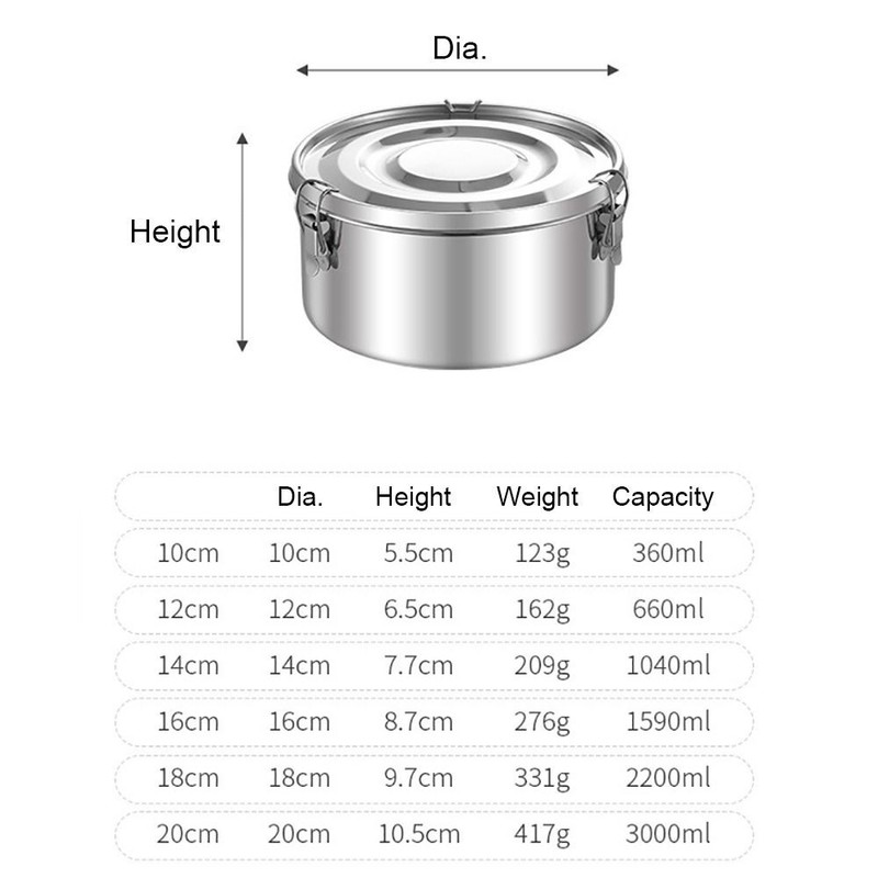 304 Stainless Steel Lunch Box Round Large Capacity