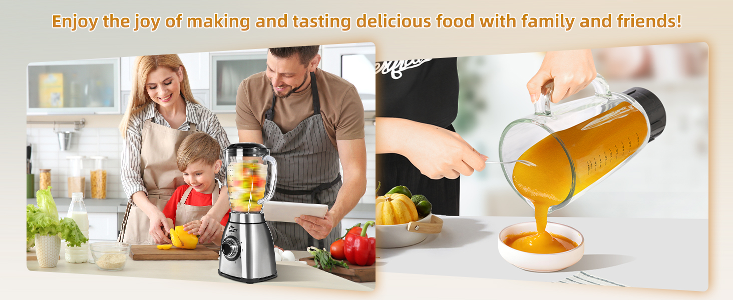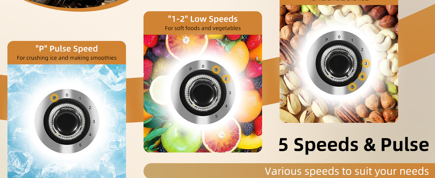 Our professional kitchen blender provides 5 speed and custom pulses to adjust the optimal running speed for food, allowing you to easily prepare smoothies, milkshakes and juices