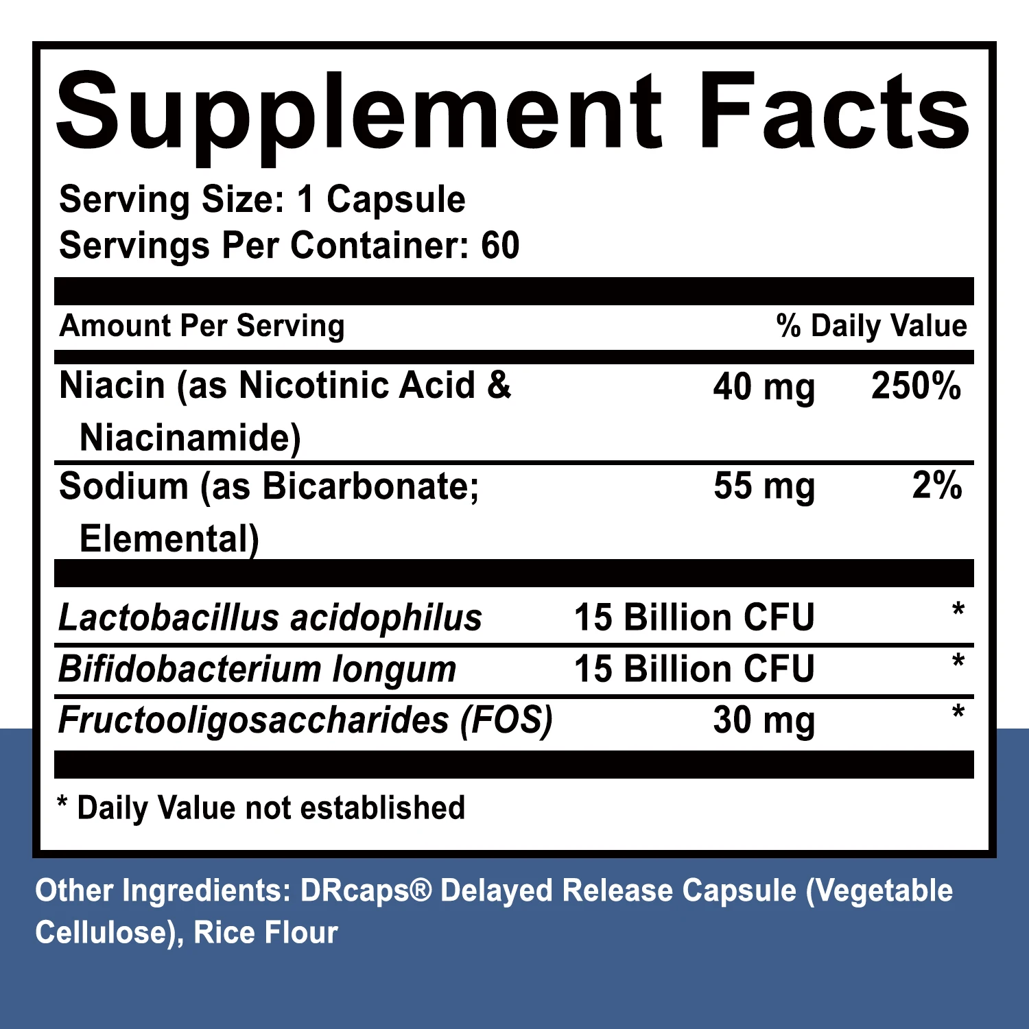 Ingredients: Niacin, Probiotics, Sodium Bicarbonate