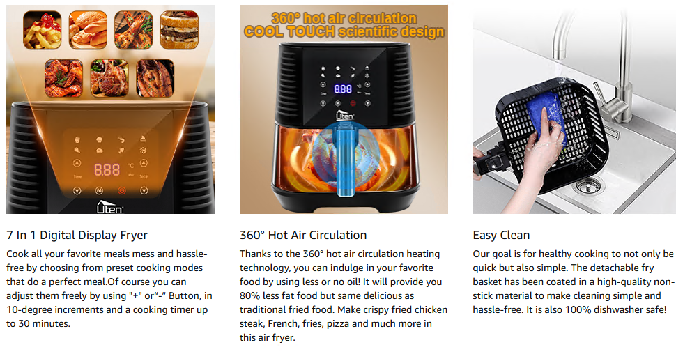 UTEN Air Fryer Kitchen Essentials 1700W intelligence Control 5.8QT Touchscreen
