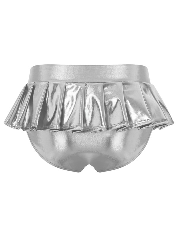 Women's Metallic Shiny Pleated Mini Skirted Underwear Rave Party Night Club