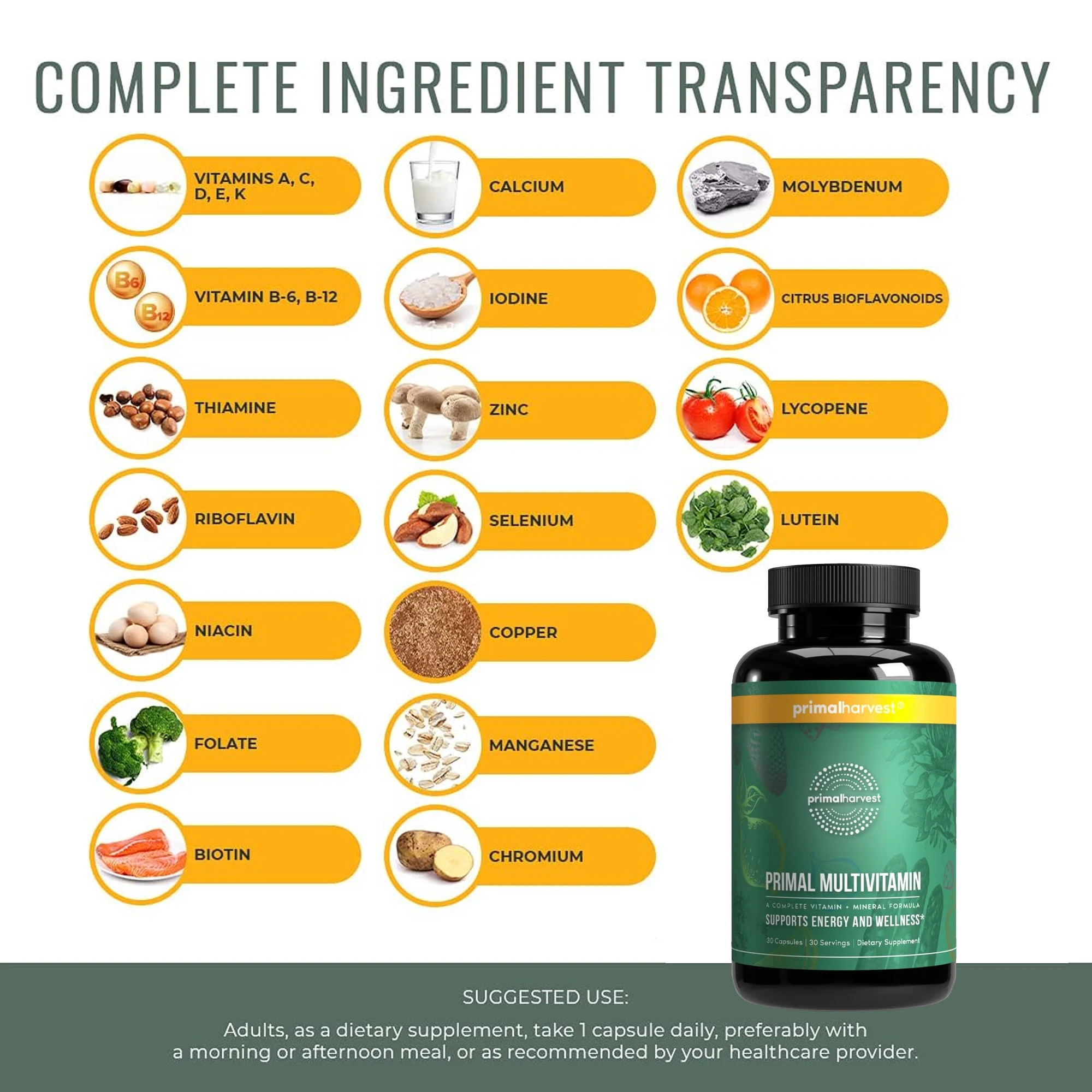 Multivitamin for Men & Women: Our pure daily vitamin A, C, D, E, K, B6, B12 & Biotin vitamin-mineral blend is designed to help maintain energy and overall health.