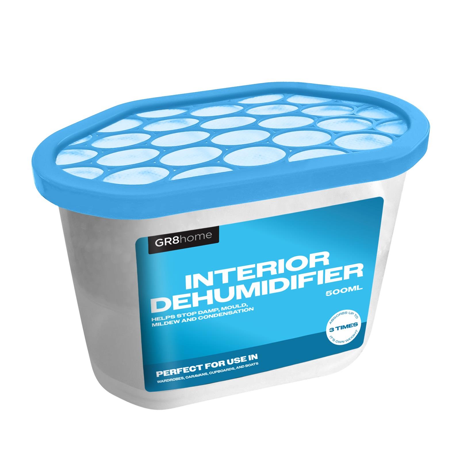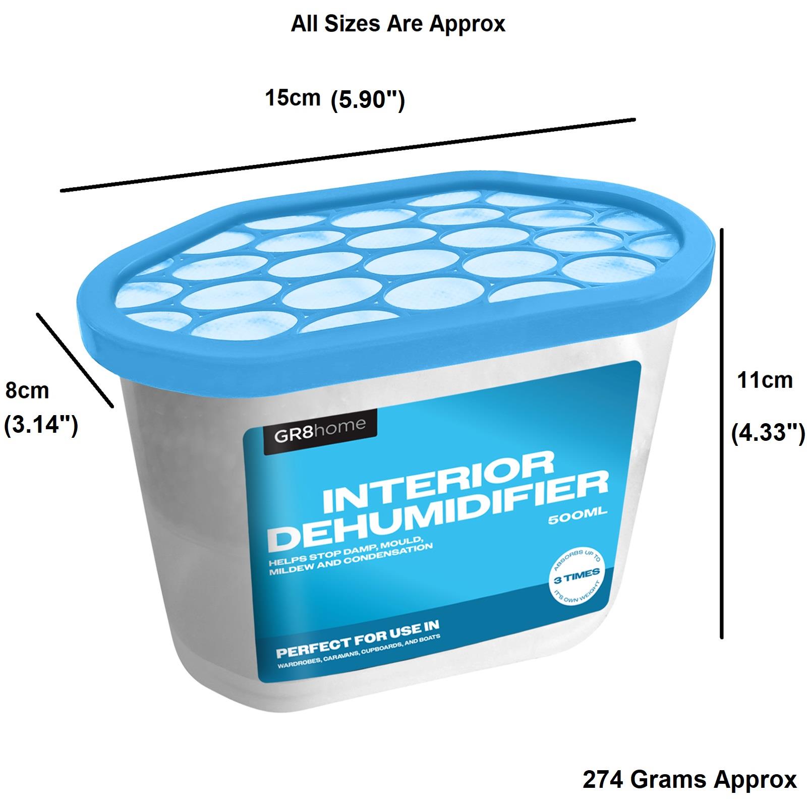 Keep your spaces dry, fresh, and free from excess moisture with this value pack of 10 Interior Dehumidifiers. Each 500ml unit is designed to effectively absorb humidity, prevent mould and mildew, and reduce condensation in enclosed areas such as wardrobes, cupboards, basements, garages, caravans, and storage boxes.