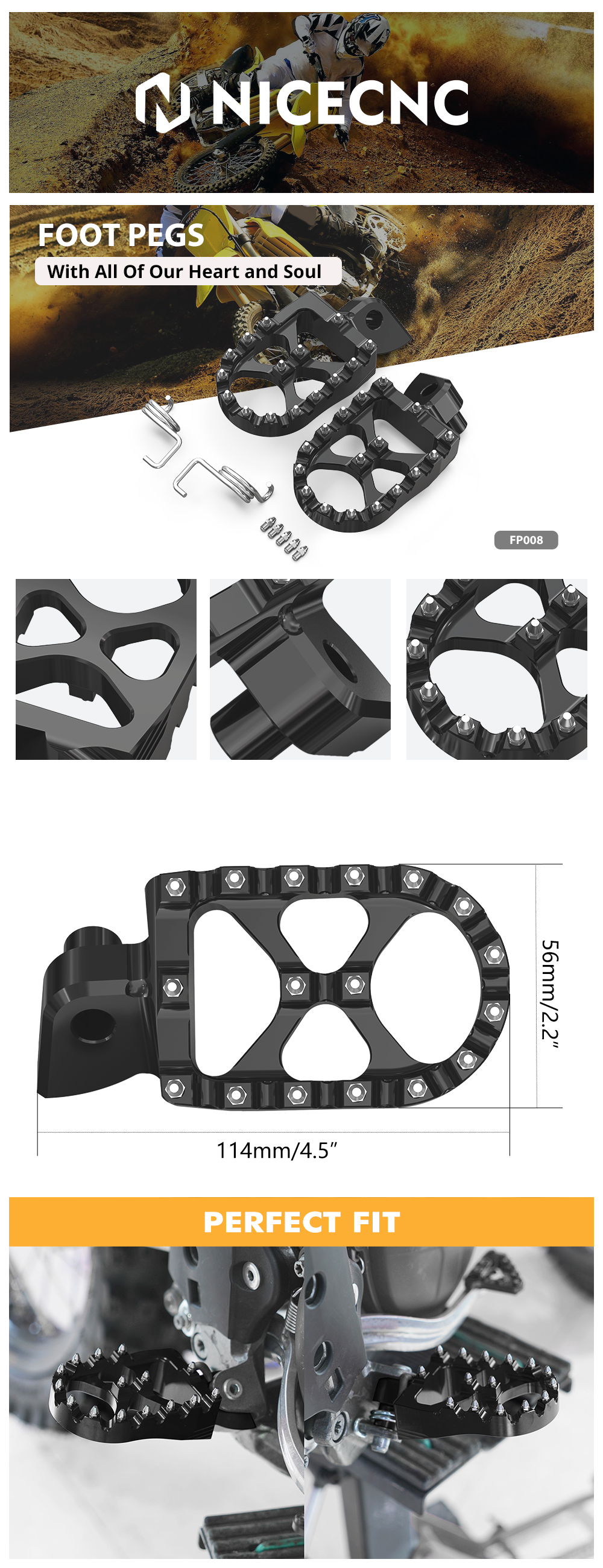 Getting maximum grip and perfect control between you and your motorcycle with these Pro-Bite Wide Foot Pegs! The Shark tooth Foot Pegs are come with an extra wide changeable stainless steel tooth plate that providing the rider with the ultimate grip and anti slip control in any race condition.