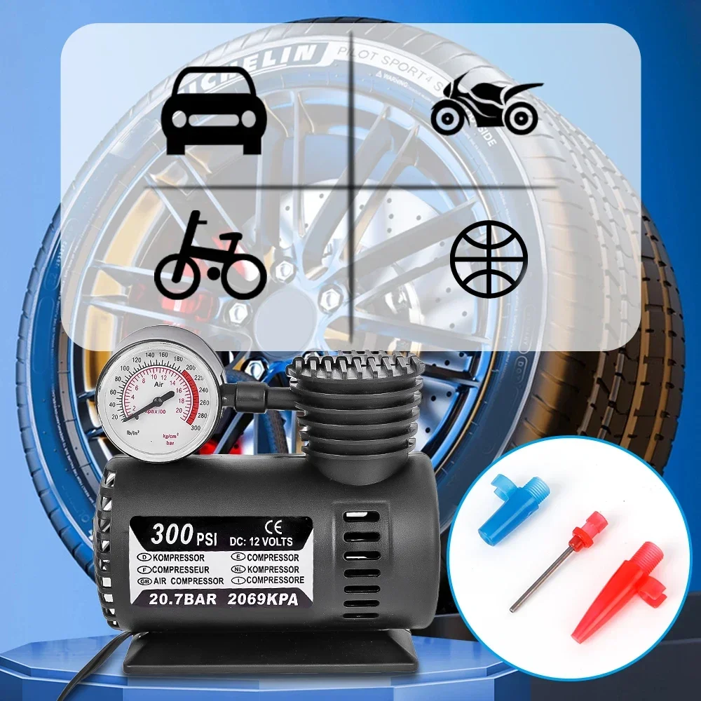 【 Multi purpose 】: This 12V air pump has a wide range of uses and can be used to inflate various items, including bicycles, motorcycles, and sports balls. It is the perfect tool to maintain optimal pressure on tires and balls.