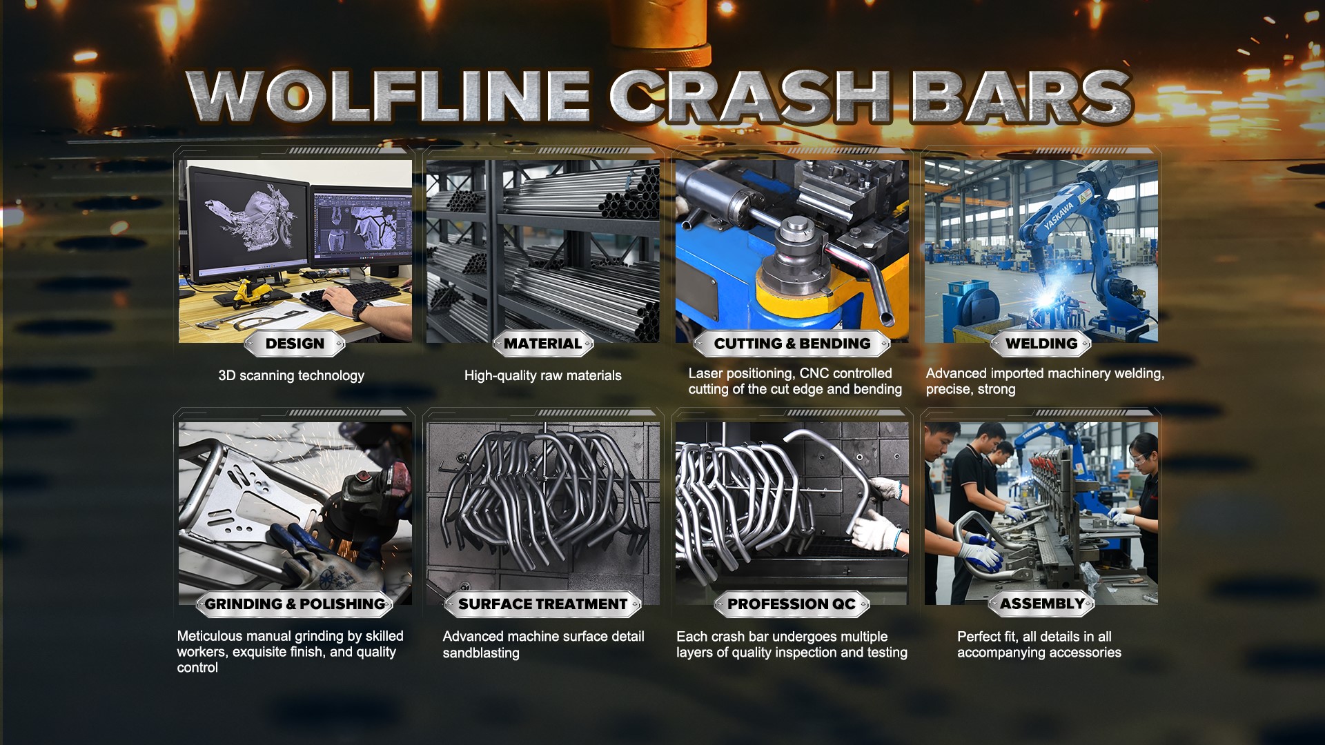 WolflineMoto® motorcycle crash bars fuse aerospace-grade strength with minimalist design, engineered to turn impacts into moments of resilience. Utilizing high-tensile carbon steel and 3D-mapped stress zones, they divert collision energy away from critical components and limbs without sacrificing your bike’s agility. Tested in extreme terrains and urban jungles, these guards shield both machine and rider while complementing your motorcycle’s silhouette.