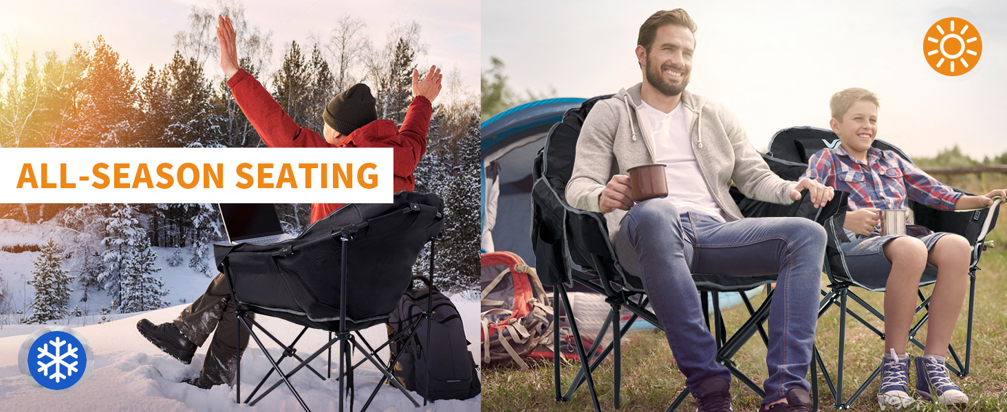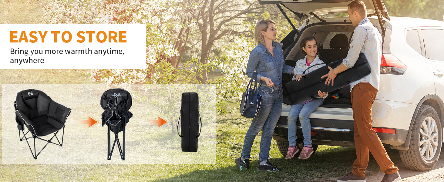 【Versatile Heated Seating】Compatible with any USB battery pack, this heated foldable chair provides portable warmth for all your adventures. Beyond camping, enjoy heated luxury on your patio, at picnics, sports events, and gatherings on the lawn.