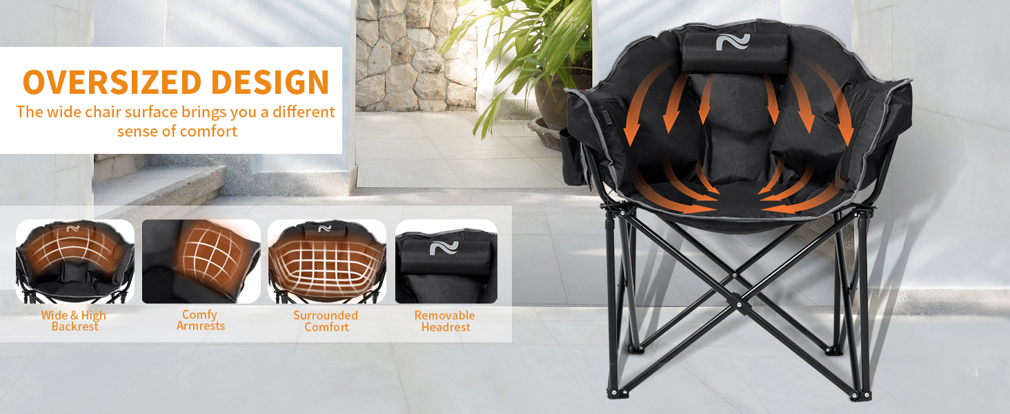 【Ultimate Comfort & Compact Design】High-density foam padding ensures exceptional comfort and back support. The fully cushioned seat provides a delightful seating experience. With a space-saving 39.4"x 20" folding size,headrest and storage bag, it's easy to transport this heated outdoor chair anywhere.