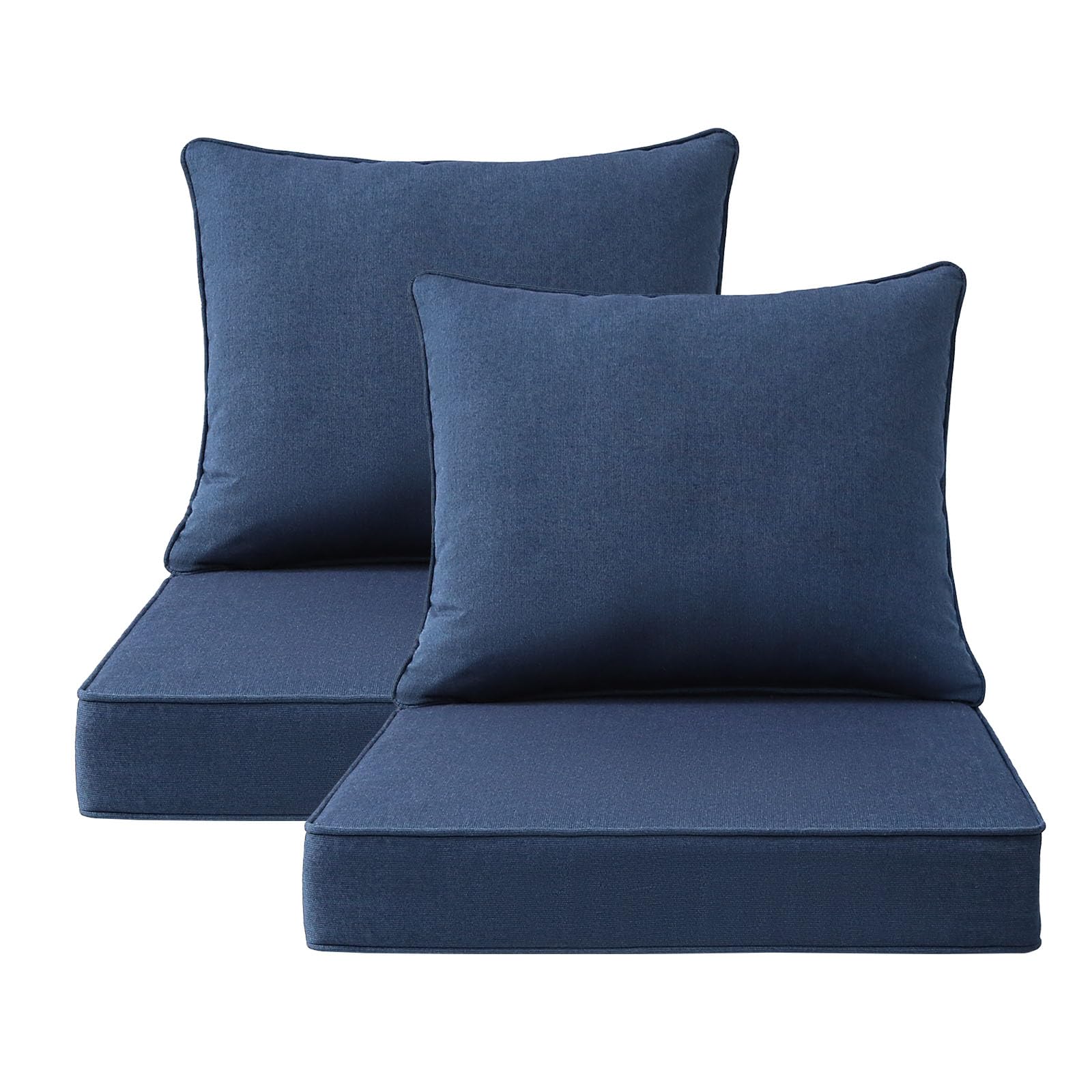 Cushion from Unimatta. Outdoor patio replacement wicker chair cushions: Durable fabric for long-lasting outdoor use. Made to fit most outdoor patio wicker chairs and a reversible design allows it to be flipped for use on either side. Seat Cushion: 22" W x 22" L X 3" thick, back cushion 22" W x 18.5" L. 1-Year Limited Service Agreement for Manufacturing Defects + 5 year Limited Service Agreement on all fabrics against loss of color, loss of strength, abrasion, and pilling. Effortless Care - Keep your outdoors a living space looking guest-ready all season long with our low-maintenance pillow for patio furniture. Easily spot clean using soap and water.