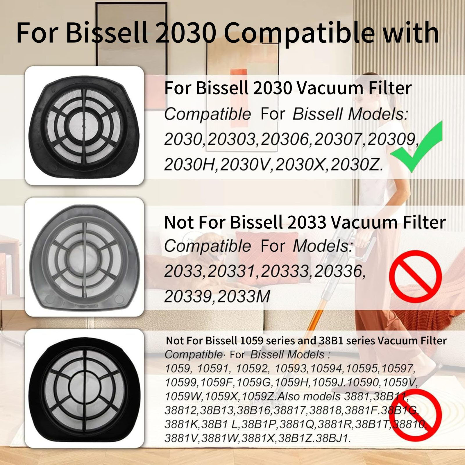 For Bissell Models: 2030, 20301, 20303, 20304, 20306, 20307, 20309, 2030B, 2030H, 2030J, 2030K, 2030L, 2030U, 2030V, 2030X, 2030Z, 3346, 3346W
