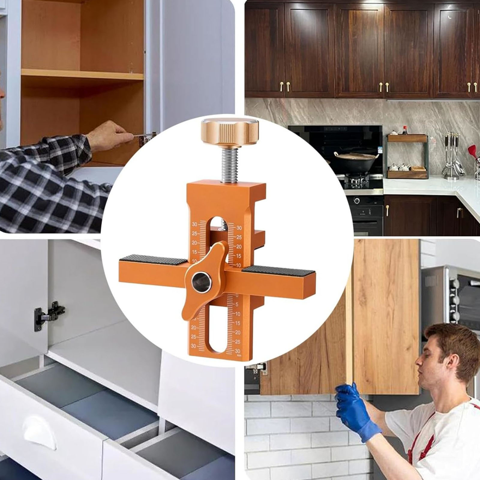1. Versatile Design: Cabinet Door Installation Tool 2-In-1 Mounting Tool With Adjustable Positioner Works For Most Cabinet Doors, Features Dual Measurement Scales From 0-30 Units On Both Sides, With Clear Markings For Precise Hardware Positioning,Accommodates Wooden Boards With Thicknesses From 10mm To 40mm (0.39" To 1.57"). This Versatility Ensures Compatibility With Various Door And Cabinet Styles, Making It An Essential Tool For Both DIY Enthusiasts And Professional Carpenters