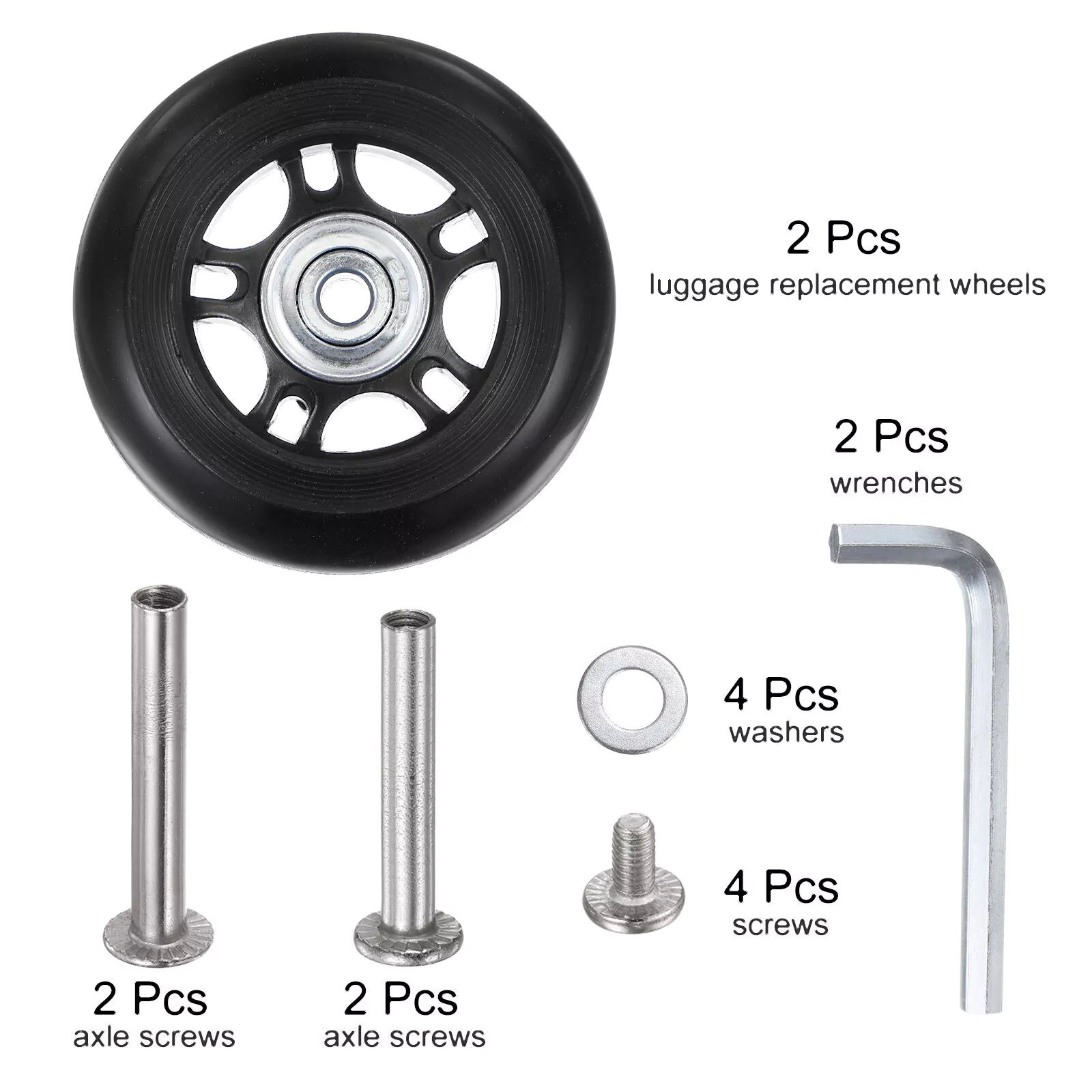 Wide Compatibility: Suitable for most luggage, trolley cases, roller skates, skateboard shoes, wheelchairs, etc. It can be used to replace damaged or worn wheels, stuck rollers, rubber-worn casters, and more, meeting a variety of replacement needs.