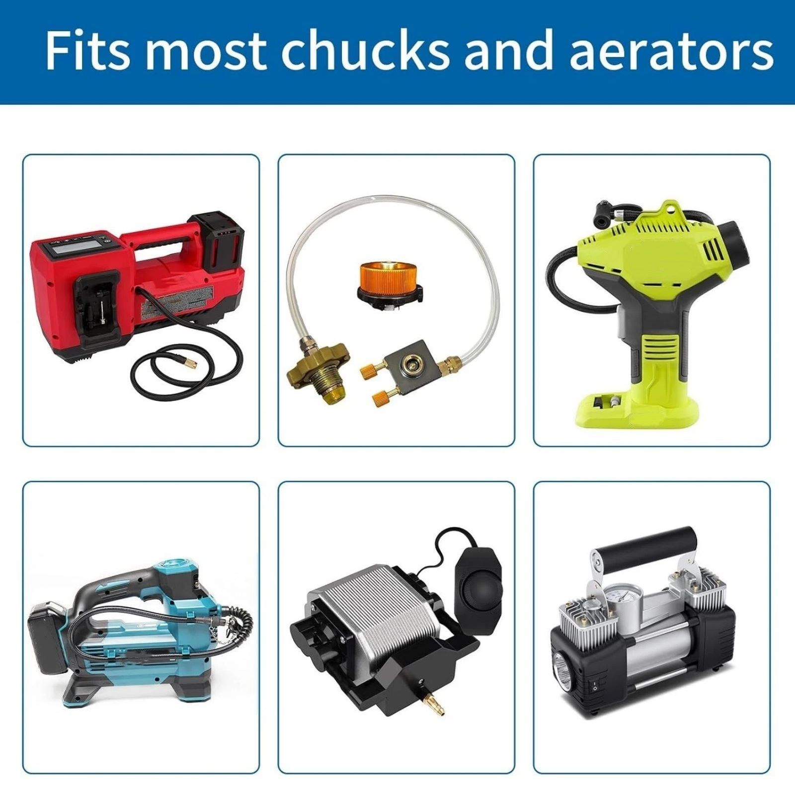 Versatile Applications: The air chuck adapter 1/4 is suitable for various scenarios, including connecting threads for automotive portable air compressors, tire pressure gauges, pumps, and other air accessories. It serves purposes in outdoor activities and automotive maintenance alike.