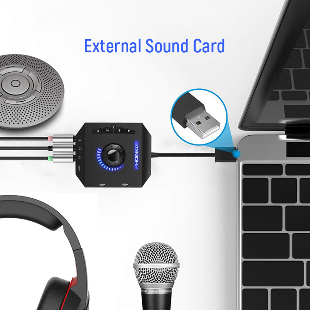 1.Multi-port sound card: The external sound card has its own audio chip, which can transfer one USB port to multiple 3.5mm ports, so it can connect 3.5mm audio devices such as headphones, headphones, speakers, microphones, etc. Supports single plug and dual plug headphones at the same time, no adapter is required.
