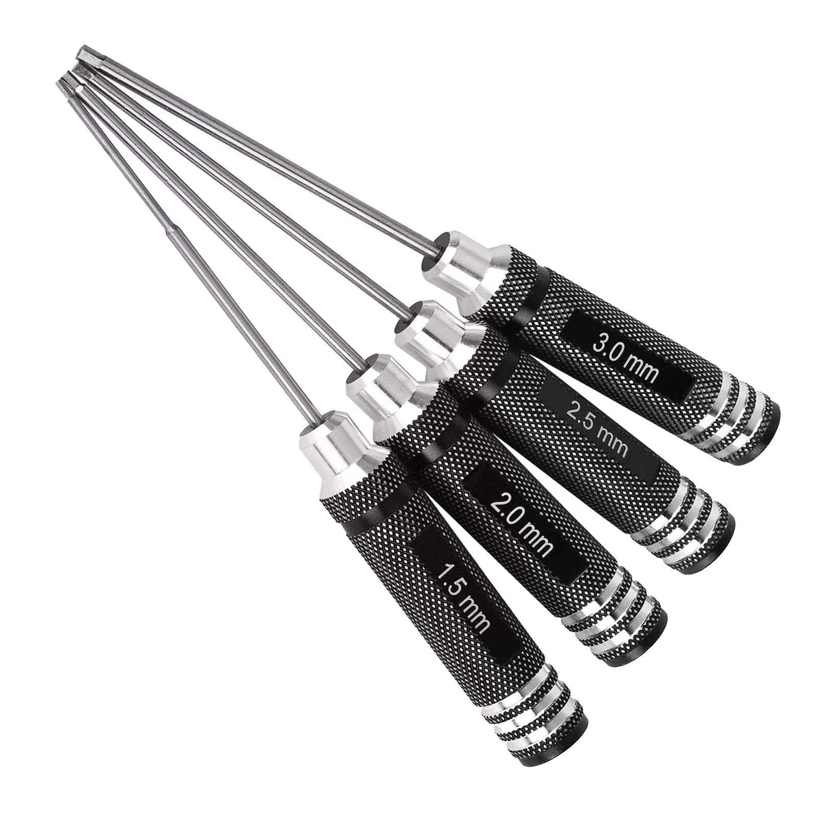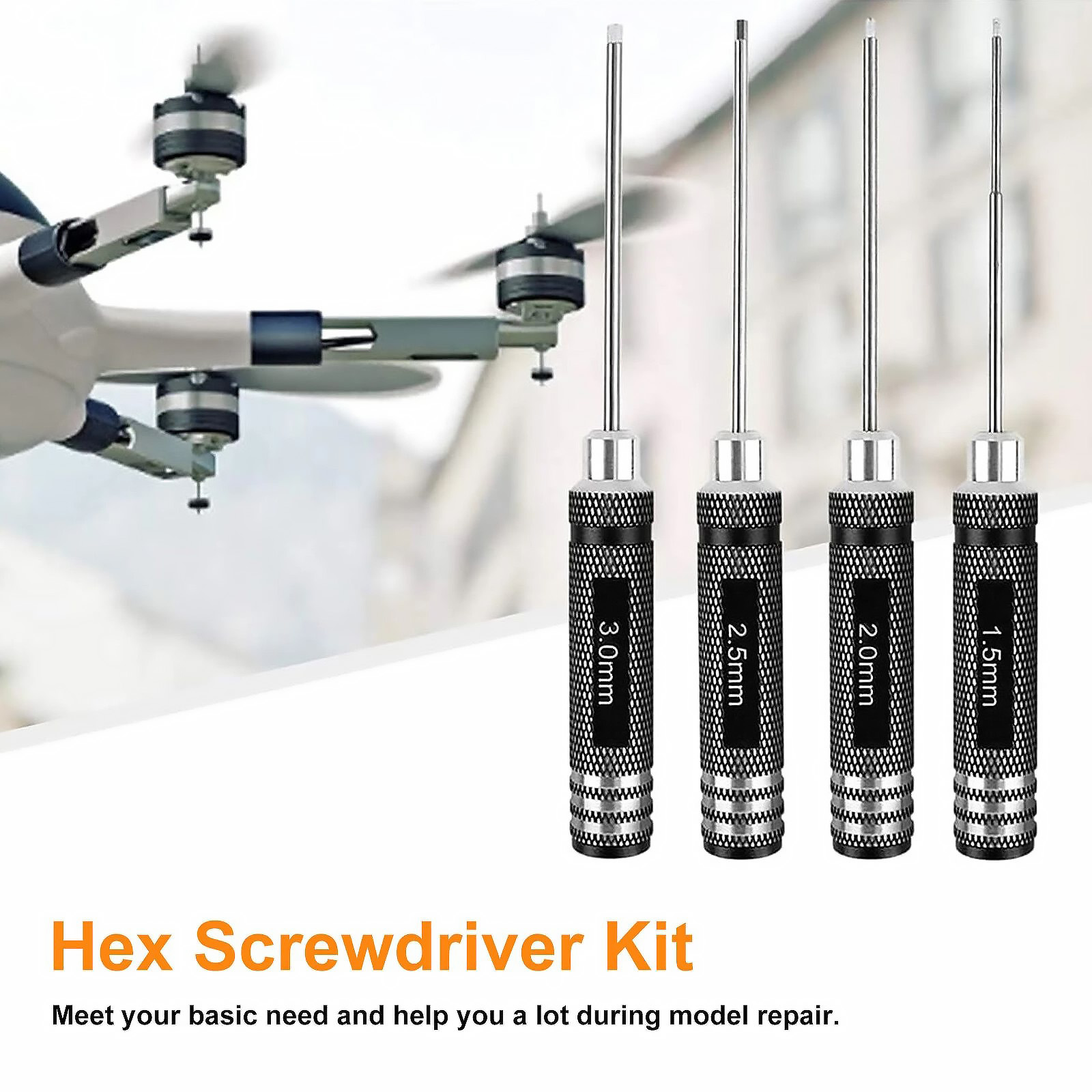 Versatile Application: This hex screwdriver tools kit set, including 1.5mm, 2.0mm, 2.5mm, and 3.0mm hex drivers, can be widely used for disassembling hex screws in helicopters, RC cars, RC boats, drones, and more, offering a wide range of applications.