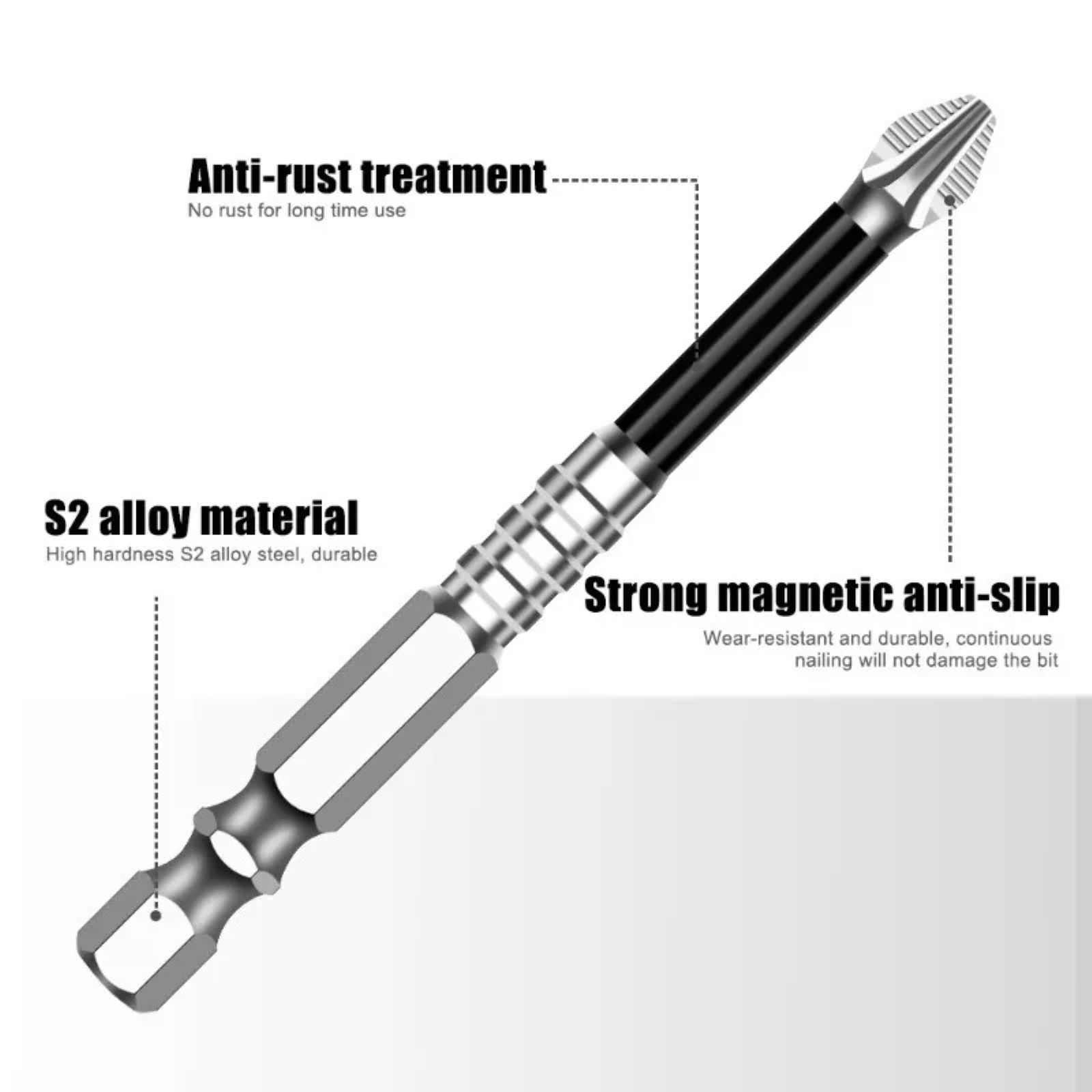 Super Magnetic Tip: The powerful magnetic end of the tool effortlessly picks up and securely holds screws in place, preventing slipping or stripping for hassle-free fastening.