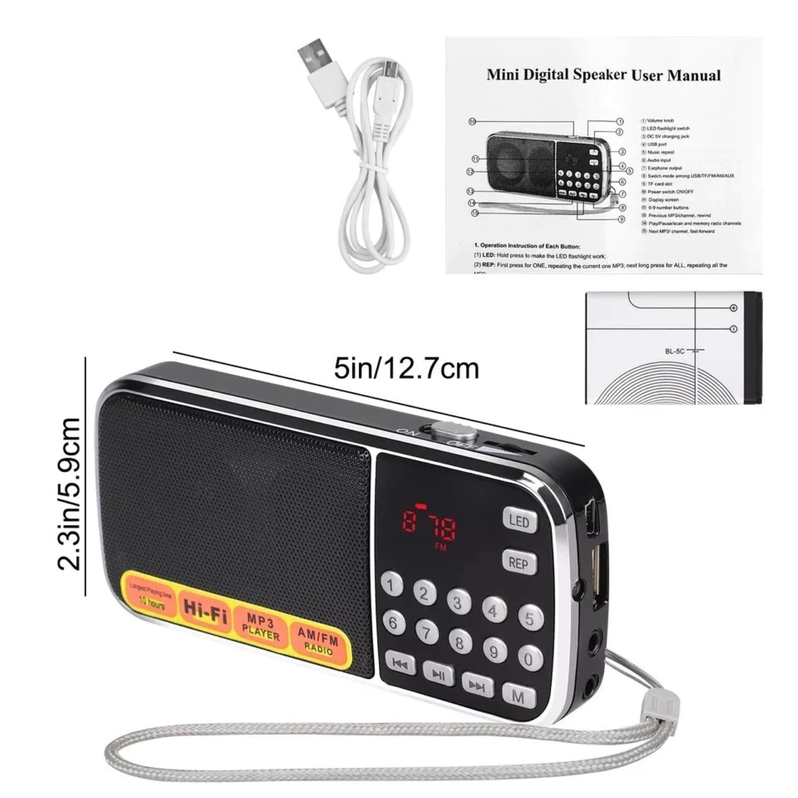 Practical Function Integration: You can select radio channels and MP3 music, with 0 - 9 number buttons for easy operation. It has an MP3 repeat function that can control the repetition of the current one or all MP3 music. In MP3 mode, if the power is cut off, the current one MP3 can be played back the next time it is powered on. It also comes with an LED flashlight, making the functions practical and thoughtful.