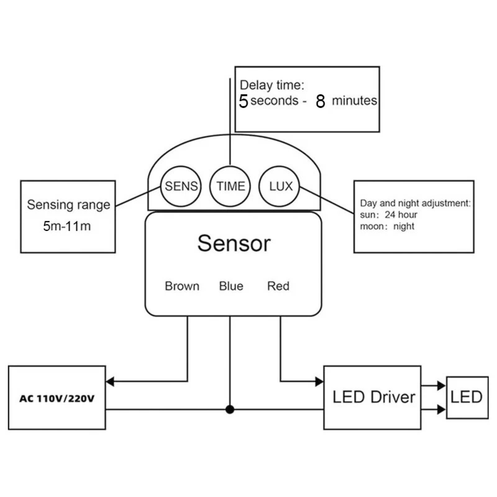 Automatic Induction: This device uses human motion infrared rays as control signal sources. As soon as someone enters the detection field, it immediately starts the controlled load, and the motion sensor can automatically distinguish between day and night.