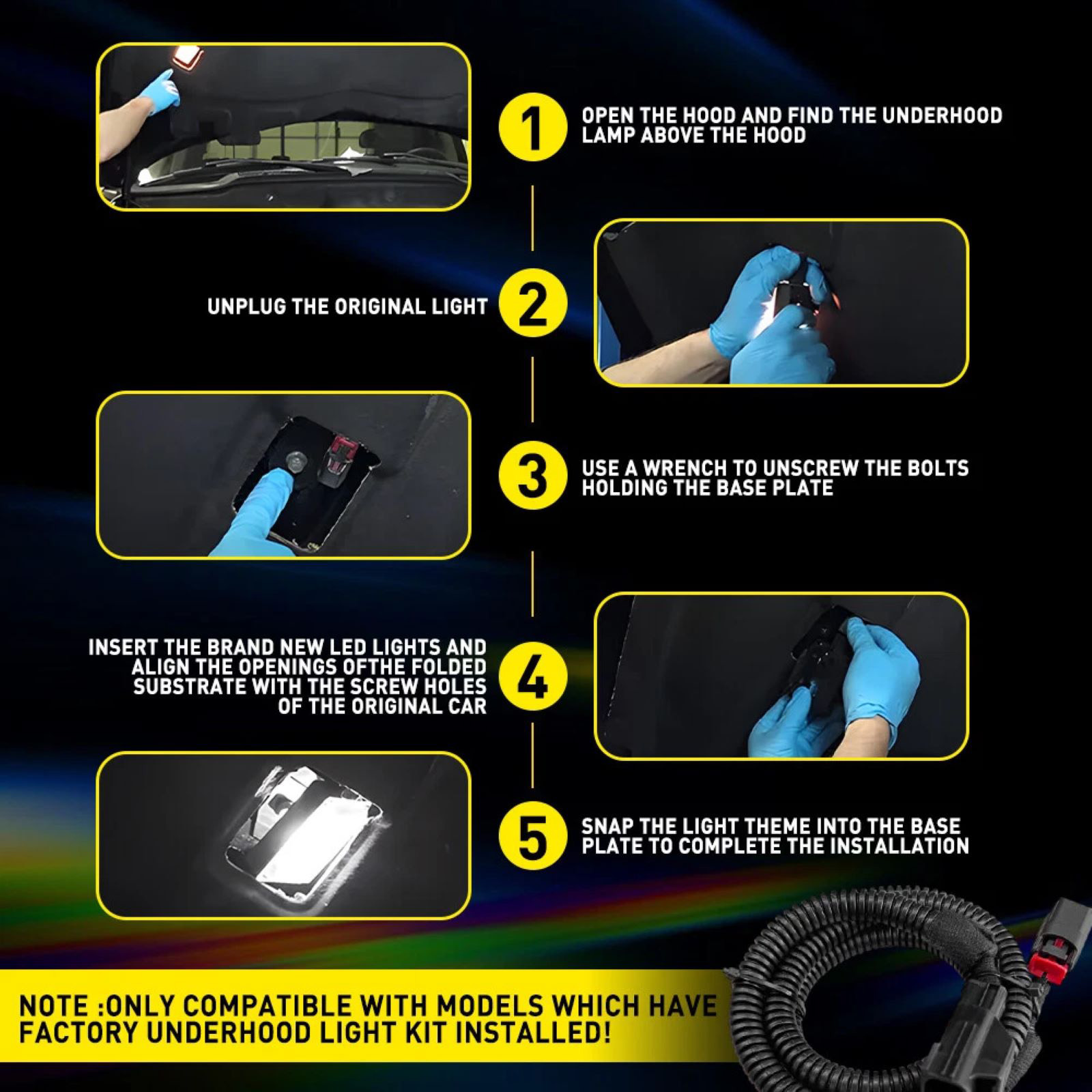Only Compatible with models which have factory underhood light kit installed!
