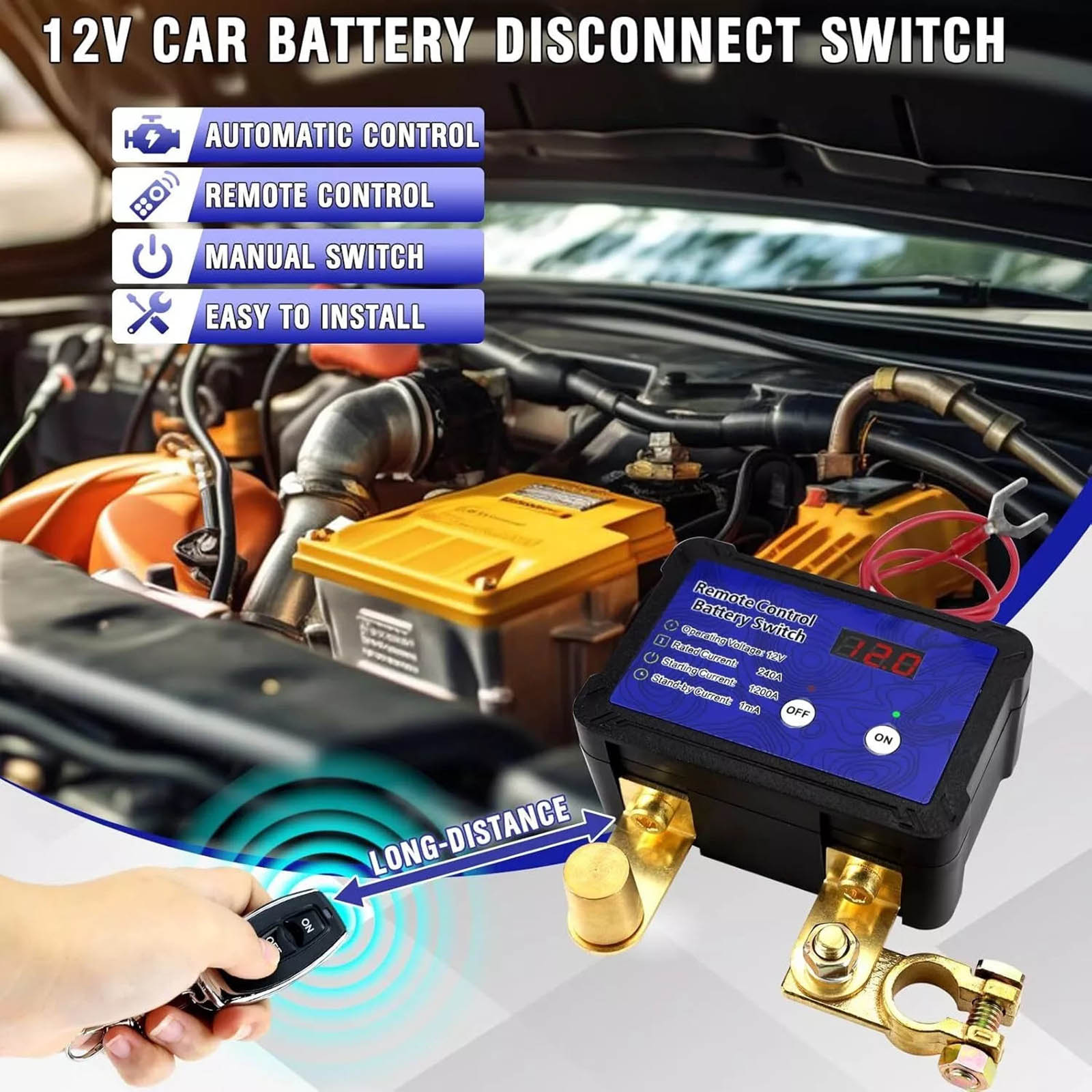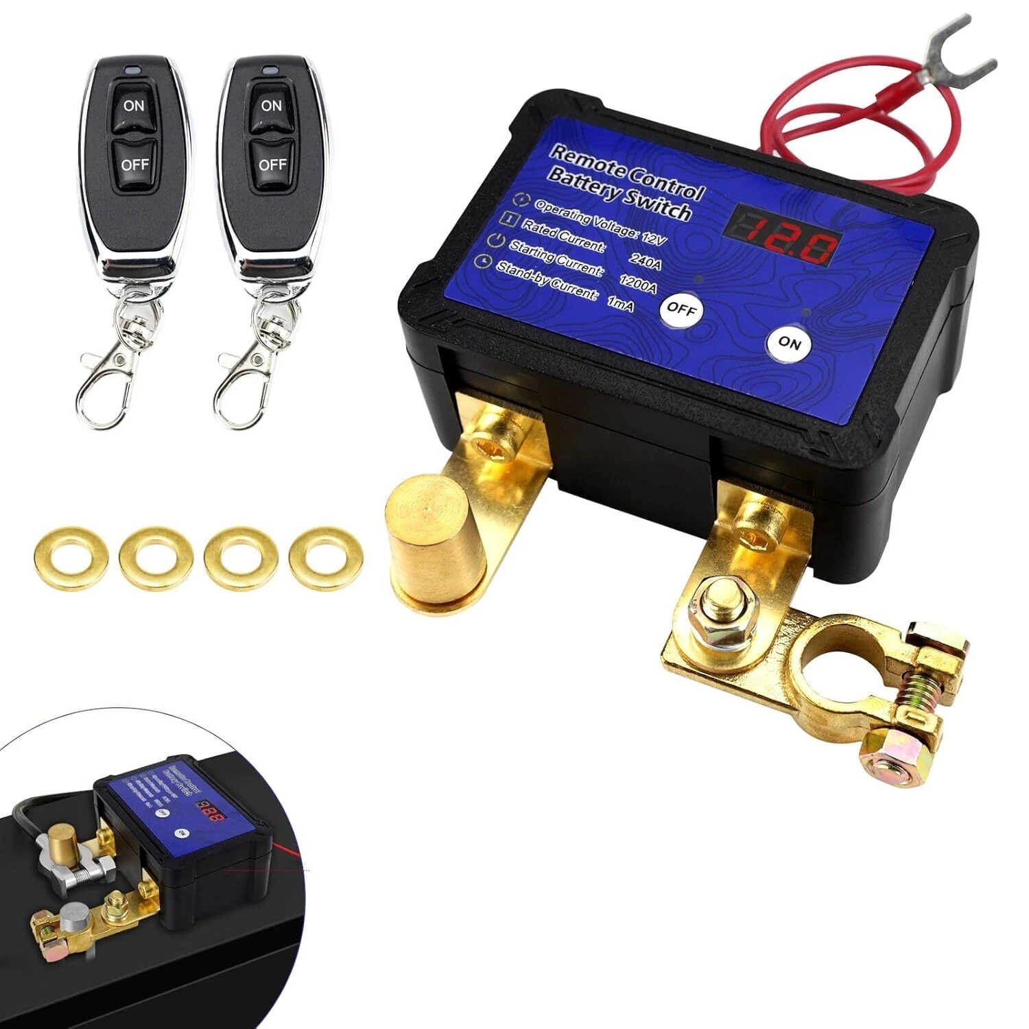 Automatic power-off switch for car battery has an LED voltage display. You can check the battery voltage in real time to know the battery status