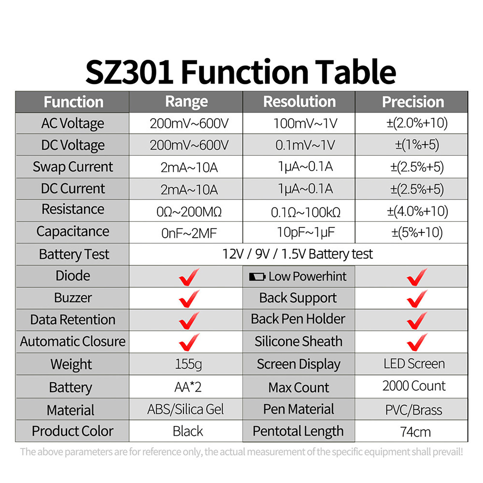 Measuring Voltage Range: 200mV-600V