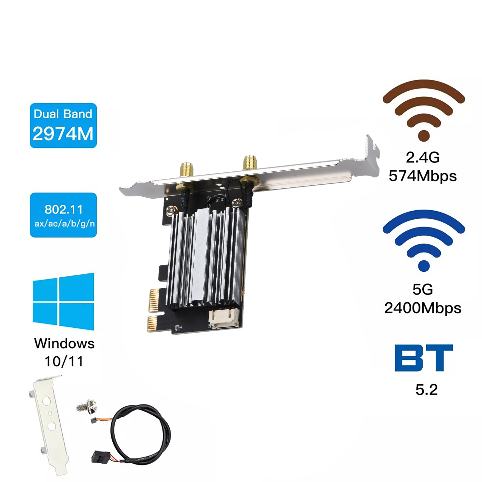 1. AX200 WIFI 6 PCI-E WIFI Network Card Is Equipped With A PCI Express Interface Which Can Reach An Ultra-High Transmission Speed Of 2974mbps 2.4ghz, 574mbps, 5ghz, 2400mbps. Ideal For Desktop Computer Online Gaming And 4K Ultra HD Video Streaming. It Supports The 802.11ax Standard, Which Can Greatly Improve Effective Bandwidth Utilization And Provide A Better Experience For Devices.