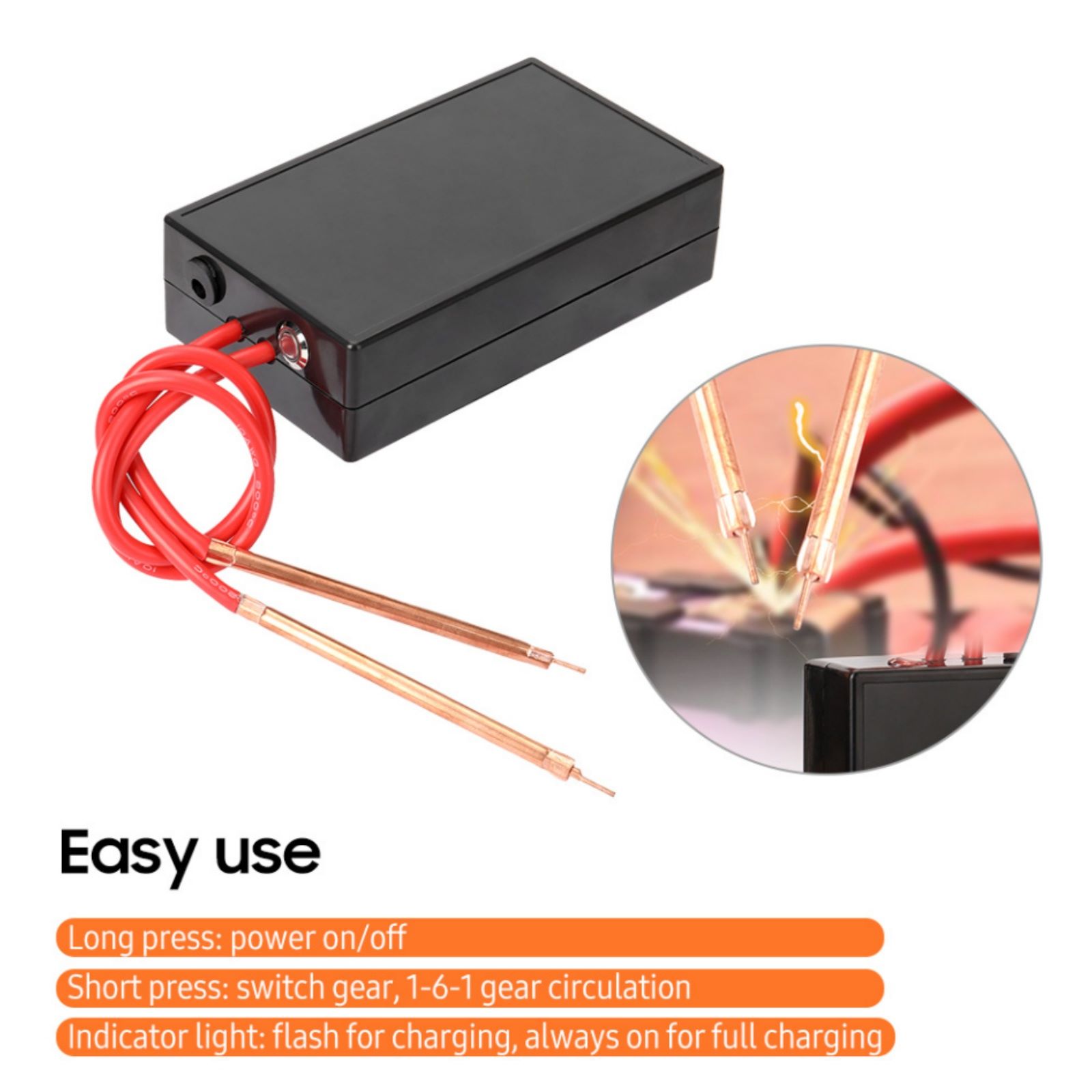 Convenient Charging and Long-lasting Battery: The welder comes with a built-in charging management control module, compatible with mobile phone chargers of 5V and at least 1A output current, equipped with a USB charging cable. It houses a 50C high-discharge-rate lithium battery that can sustain hundreds of welds for commonly used nickel-plated sheets after a full charge, ensuring long-lasting durability.