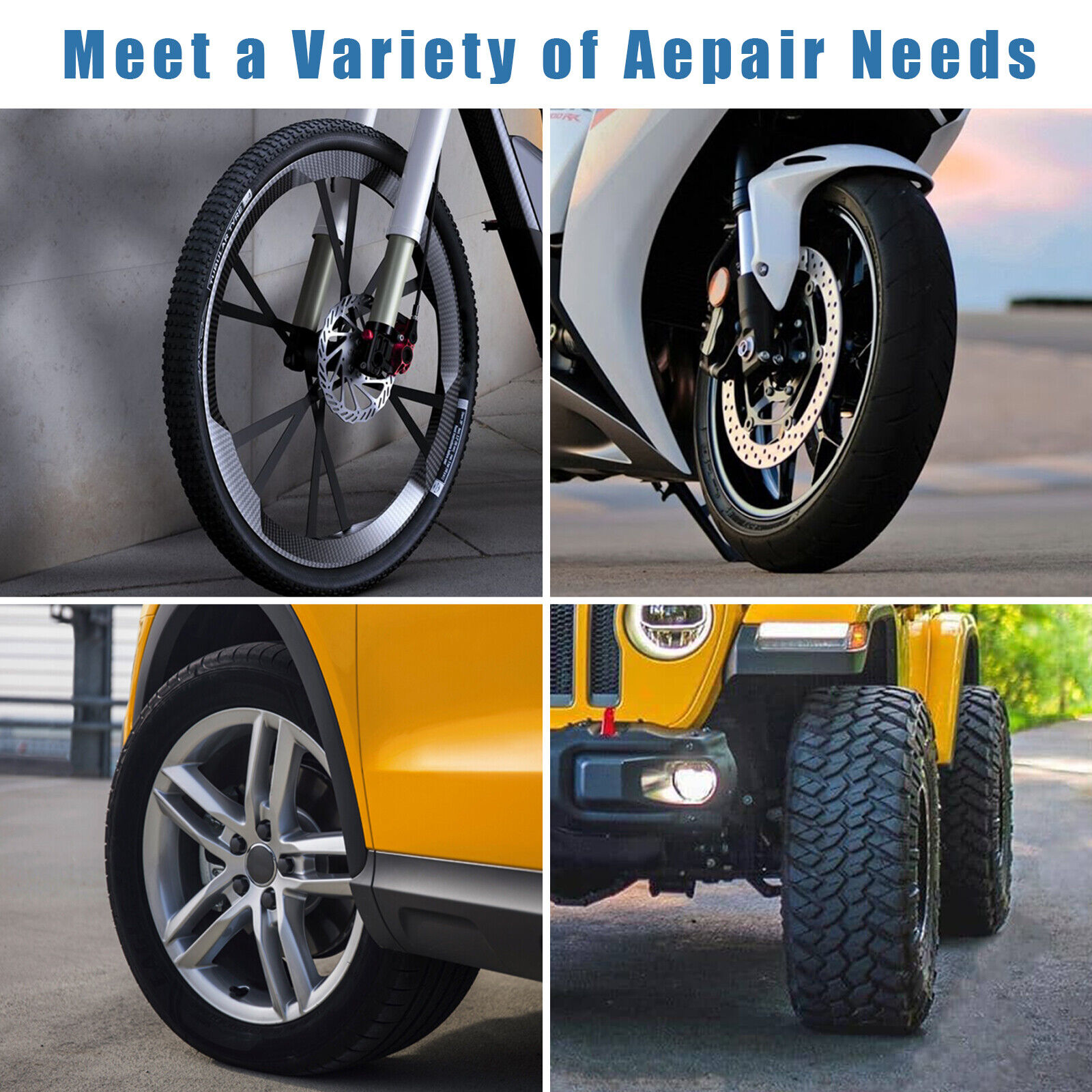 WIDELY APPLICATION: Fit for repairing tire accessories and removing broken tires, suitable for cars, trucks, motorcycles, tractors, and more. (For better repair effects, it is recommended to drill the injured area at least 3-5 times from the inside to the outside of the tire with a low-speed drill bit.)
