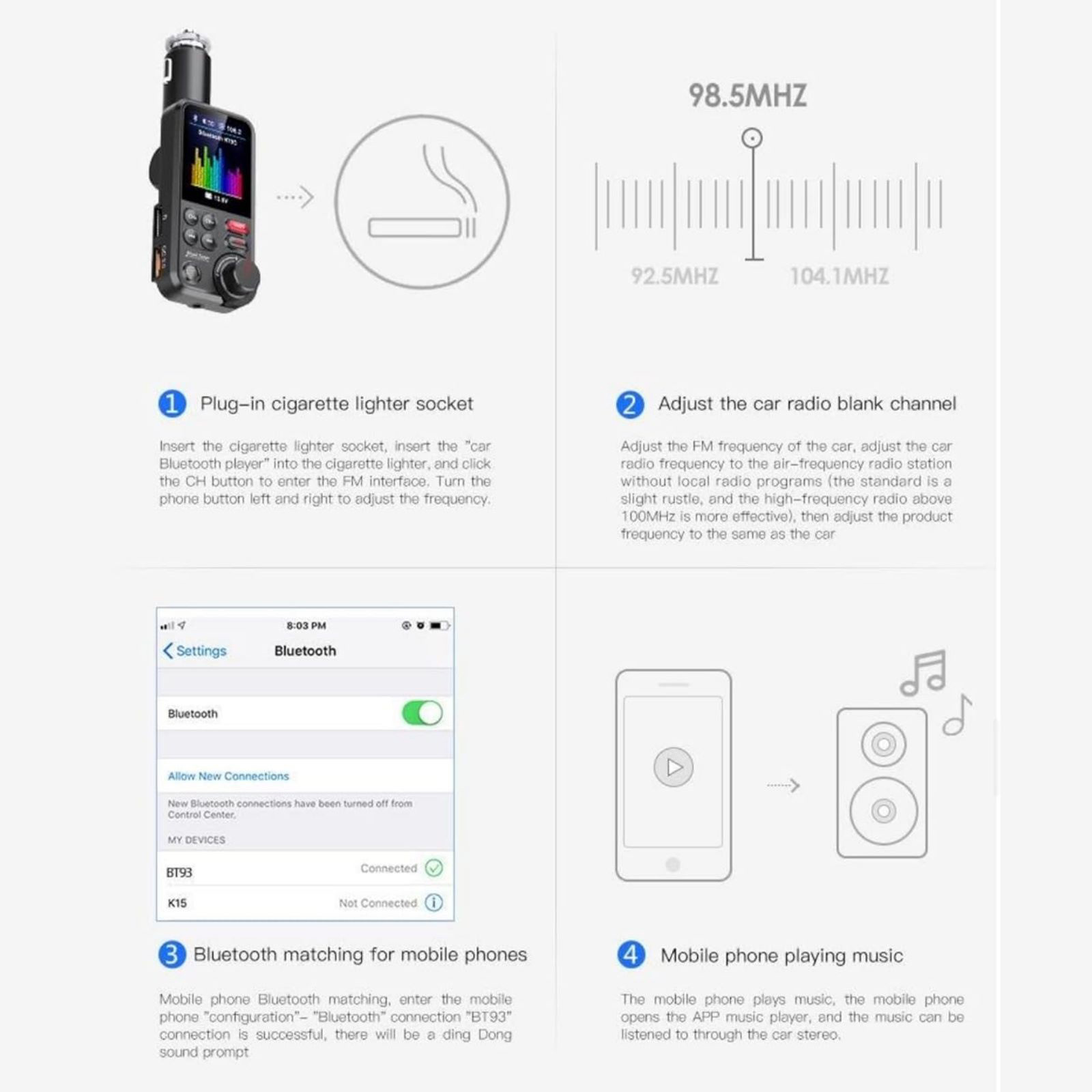 FM Frequency Range: 87.5-108MHz (0.1MHz Band)