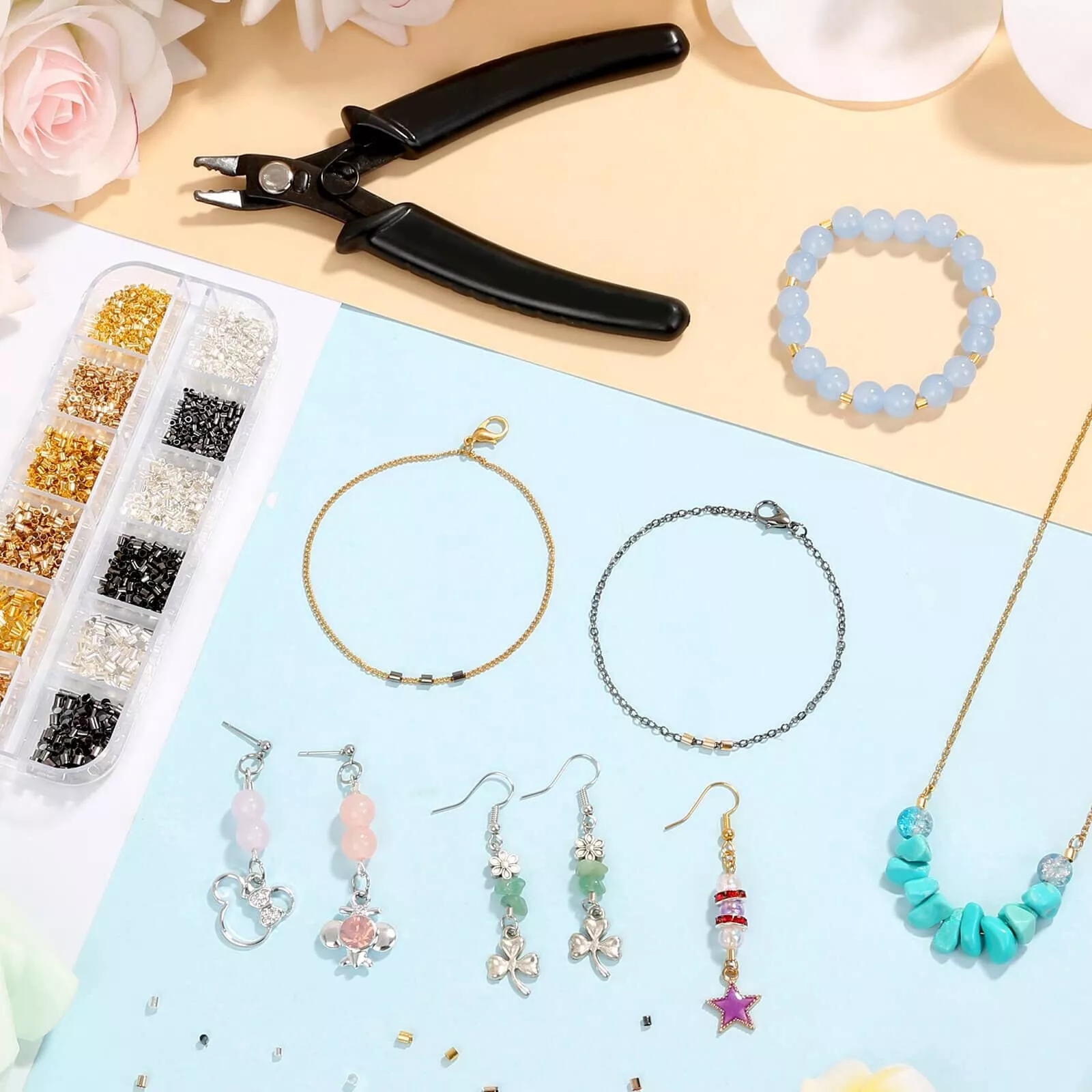 Use crimping pliers to roll knots, leather, nylon rope, thread, wire, suede, and other fibers, these jewelry crimps can be paired with jump rings, lobster clasp, earring hooks, beads, suitable for different craft projects.
