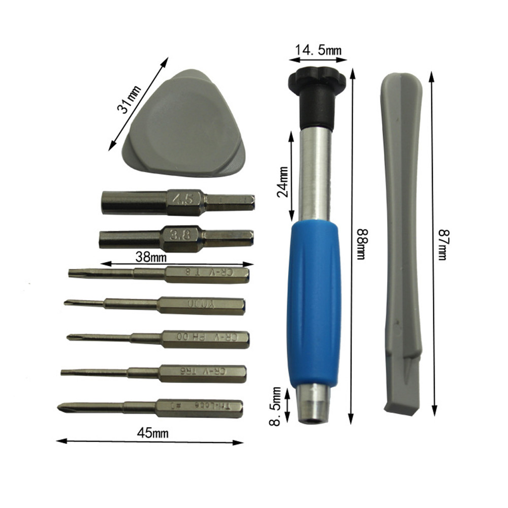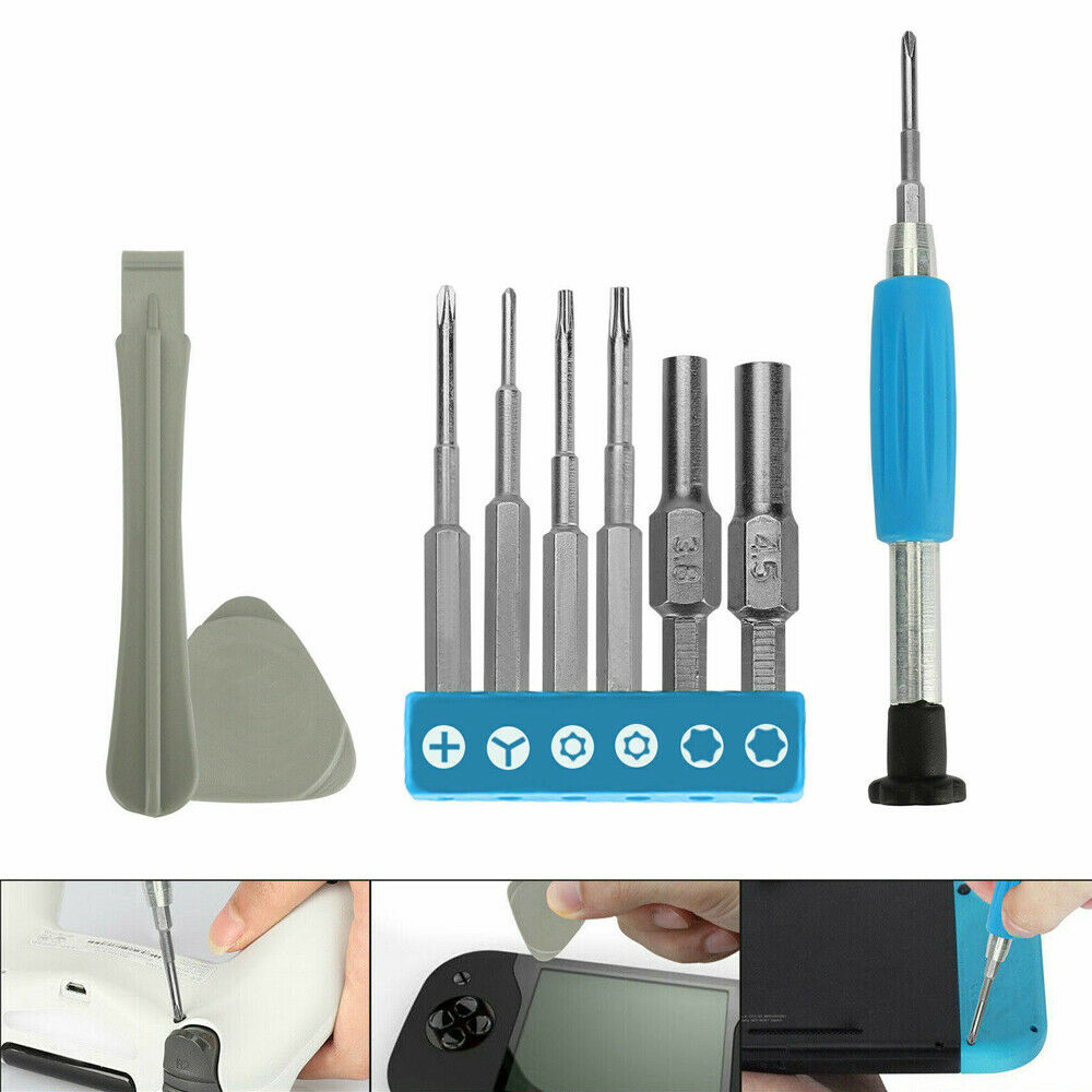 This screwdriver set comes with 7 security screwdriver bits for opening compatible game consoles and cartridges, compatibility list below.