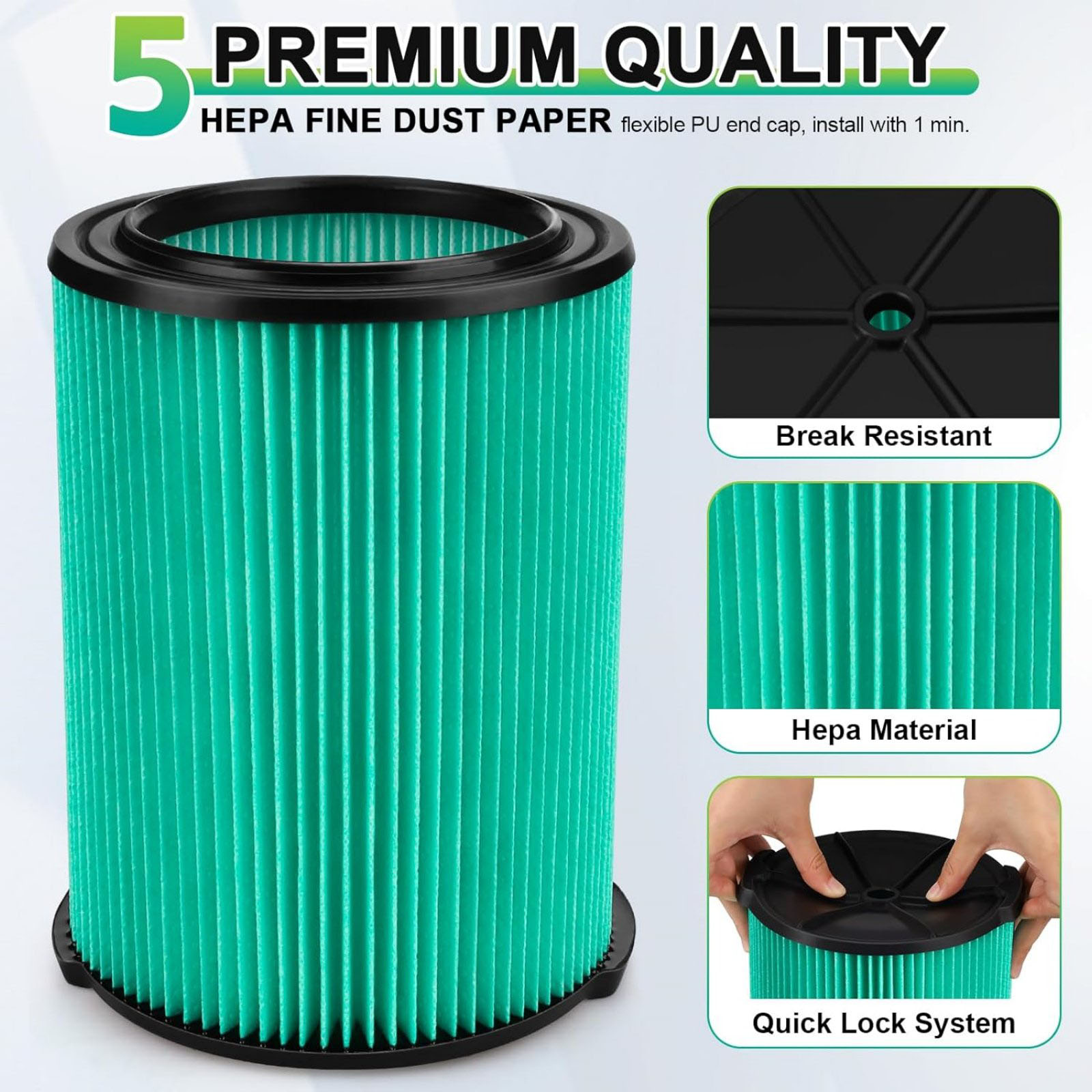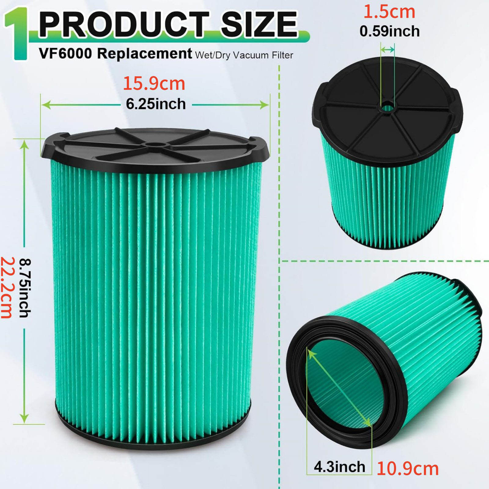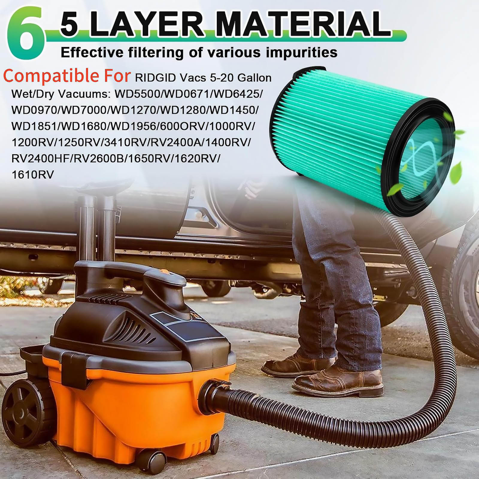 Compatible For Ridgid Vacs 5-20 Gallon Wet/Dry Vacuums: WD5500/WD0671/WD6425/WD0970/WD7000/WD1270/WD1280/WD1450/WD1851/WD1680/WD1956/600ORV/1000/1200RV/1250RV/3410RV/RV2400A/1400RV/RV2400HF/RV2600B/1650RV/1620RV/1610RV