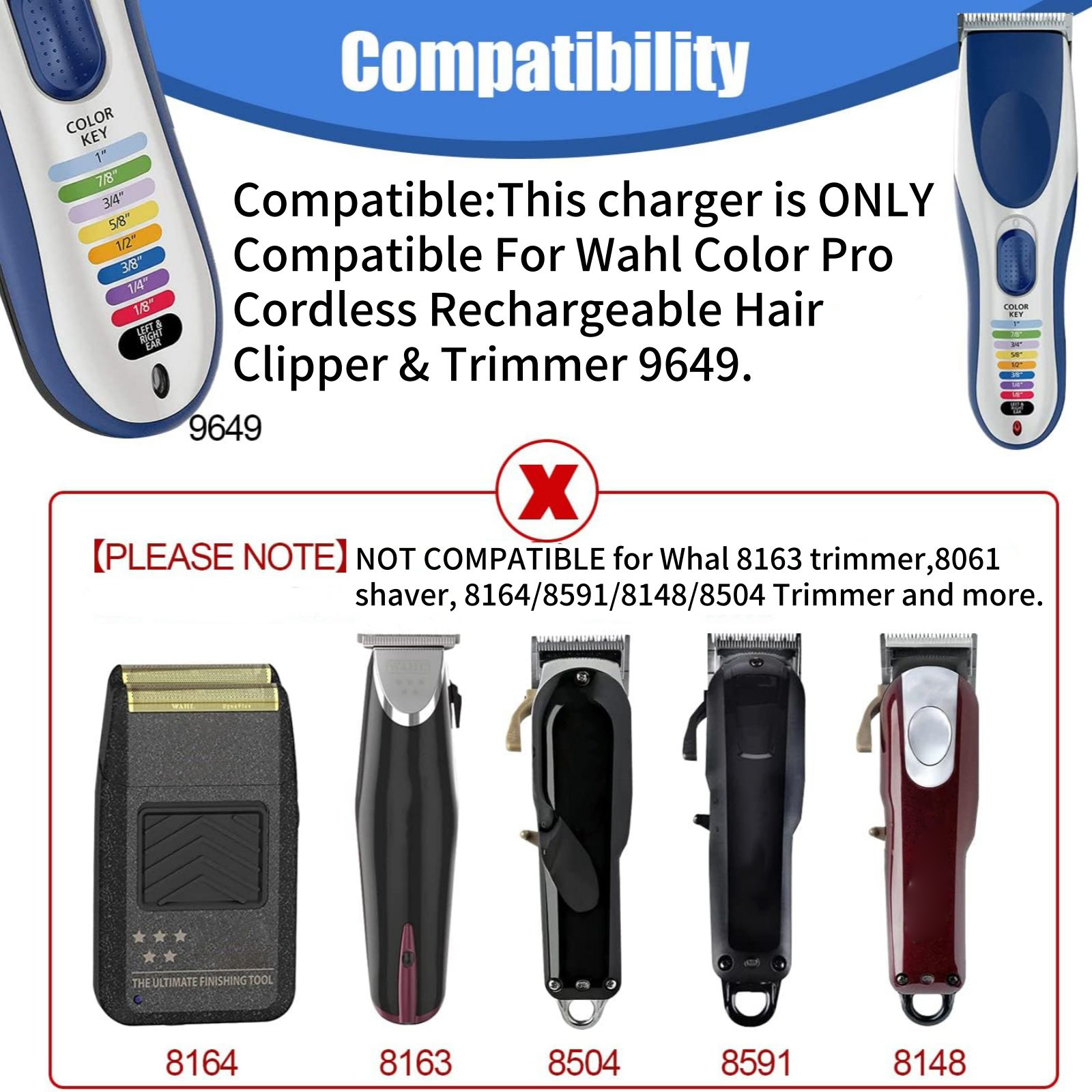 This Charger Is Only Compatible For Wahl Color Pro Cordless Rechargeable Hair Clipper& Trimmer 9649.