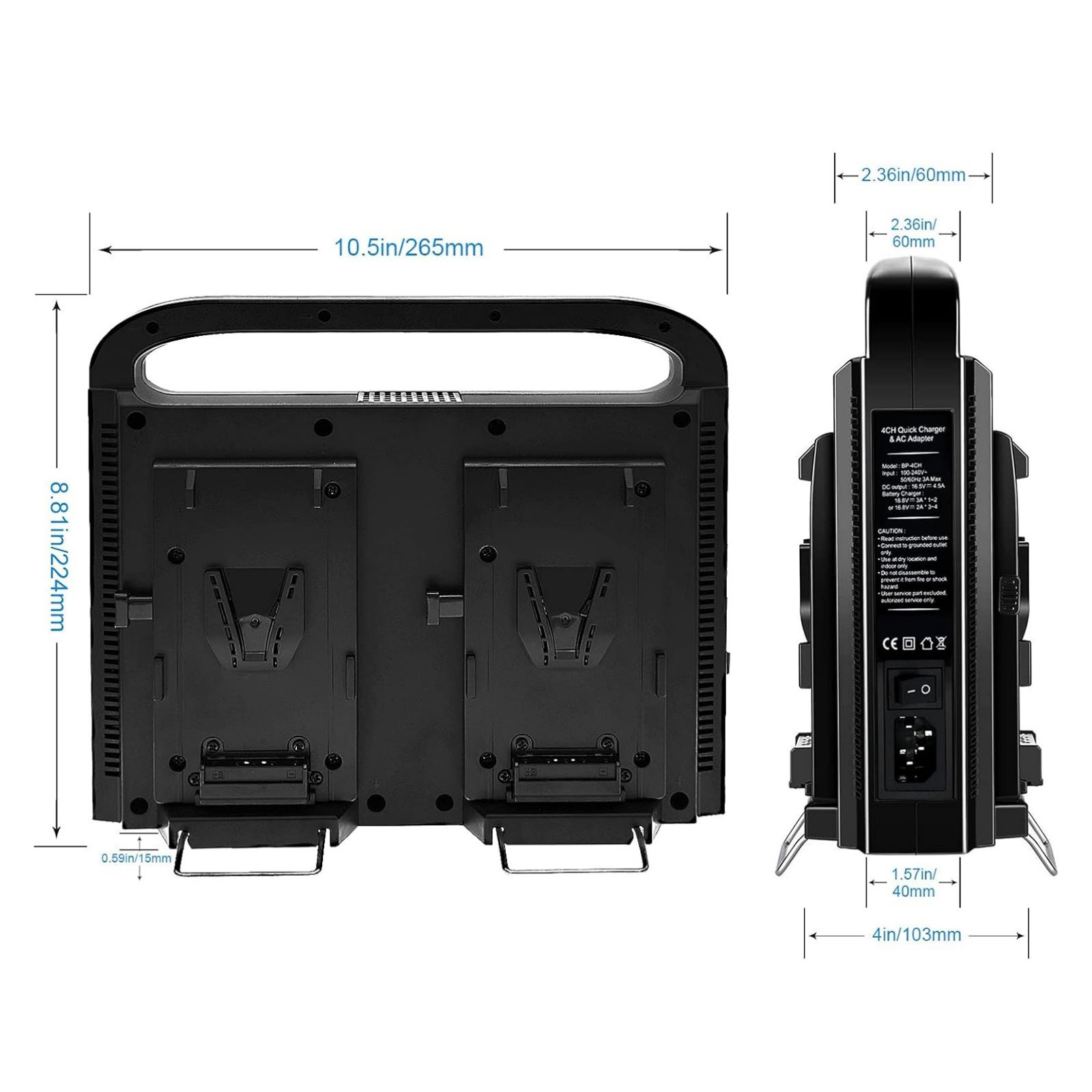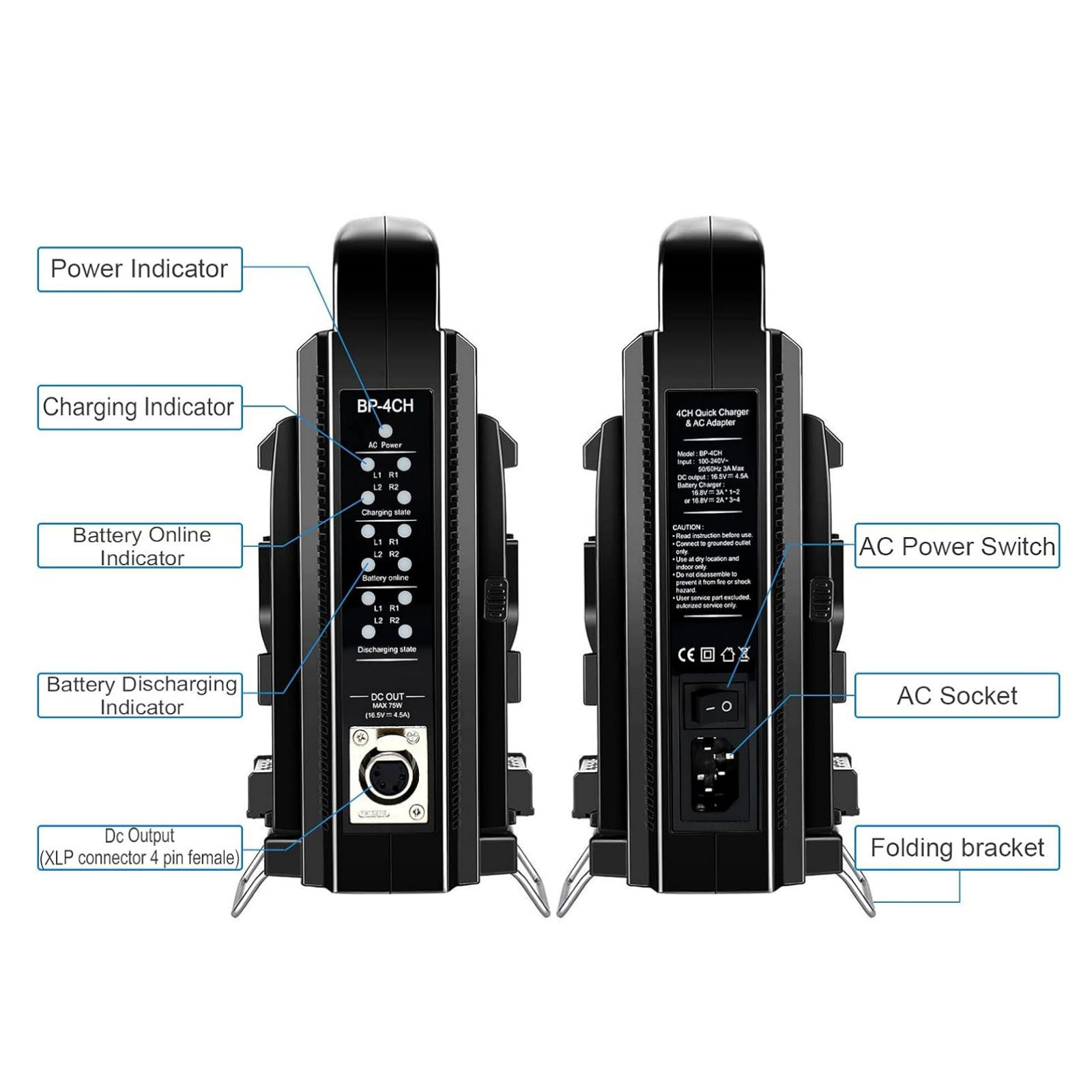 Four-channel efficient charging: This charger is designed for Sony 14.4V/14.8V V-Mount batteries and supports the simultaneous charging of four batteries, greatly improving the charging efficiency. Whether it is a single or multiple battery, it can be filled quickly to meet your diverse charging needs.