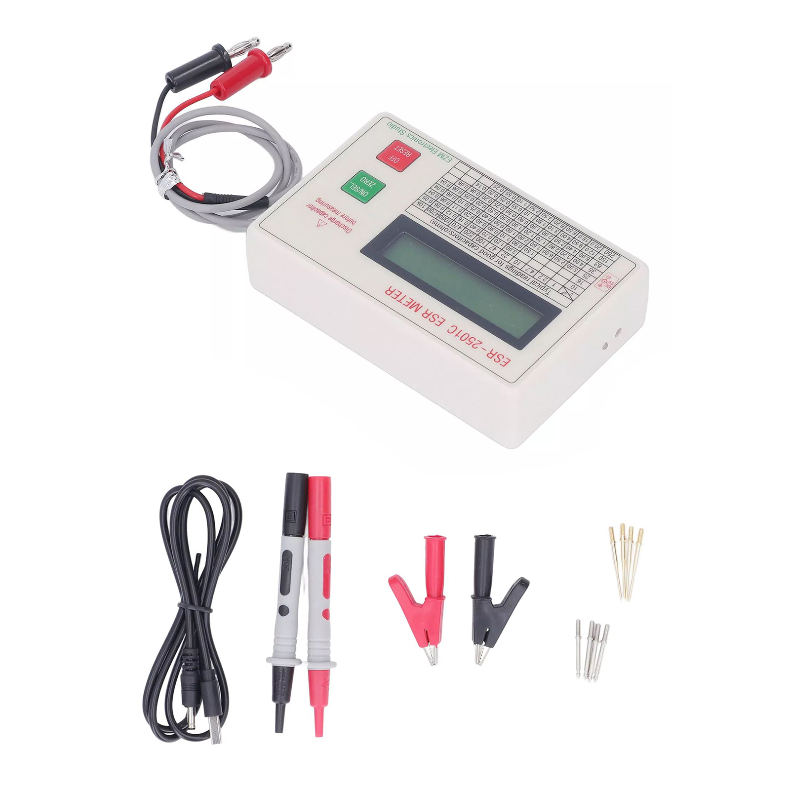 Automatic Zero Adjustment: Upon power-on and when switching between ESR and DCR measurements, the instrument automatically performs zero adjustment to ensure the accuracy of measurement results. The LCD screen displays the ESR value and probe compensation value in real-time, facilitating user calibration and adjustment.