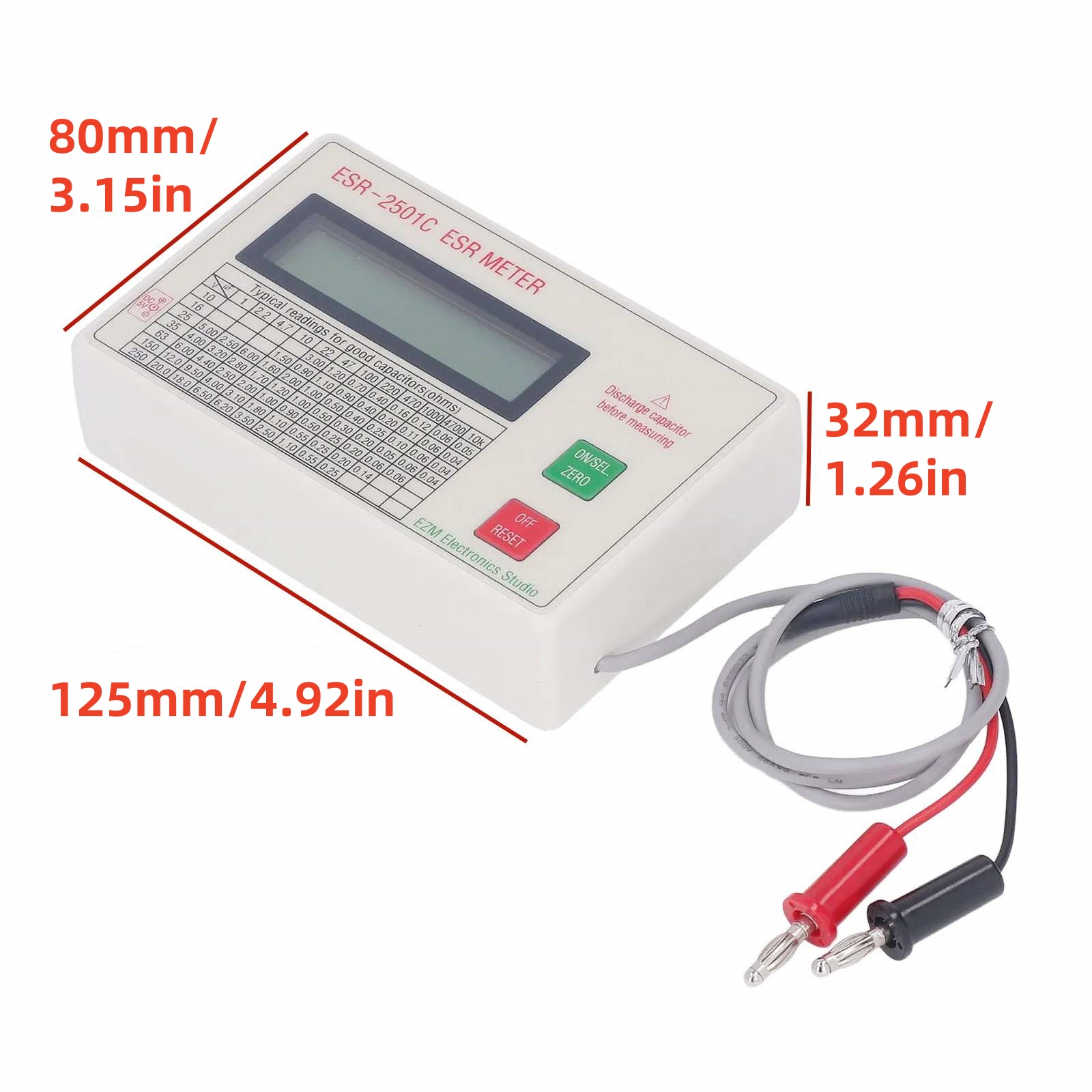 Versatility and Reliable Results: Besides measuring ESR and DCR, the tester also offers additional functions such as capacitance measurement and temperature compensation, enhancing its versatility for various testing needs. Advanced measurement techniques and algorithms ensure the reliability and consistency of measurement results, providing accurate basis for capacitor performance analysis.