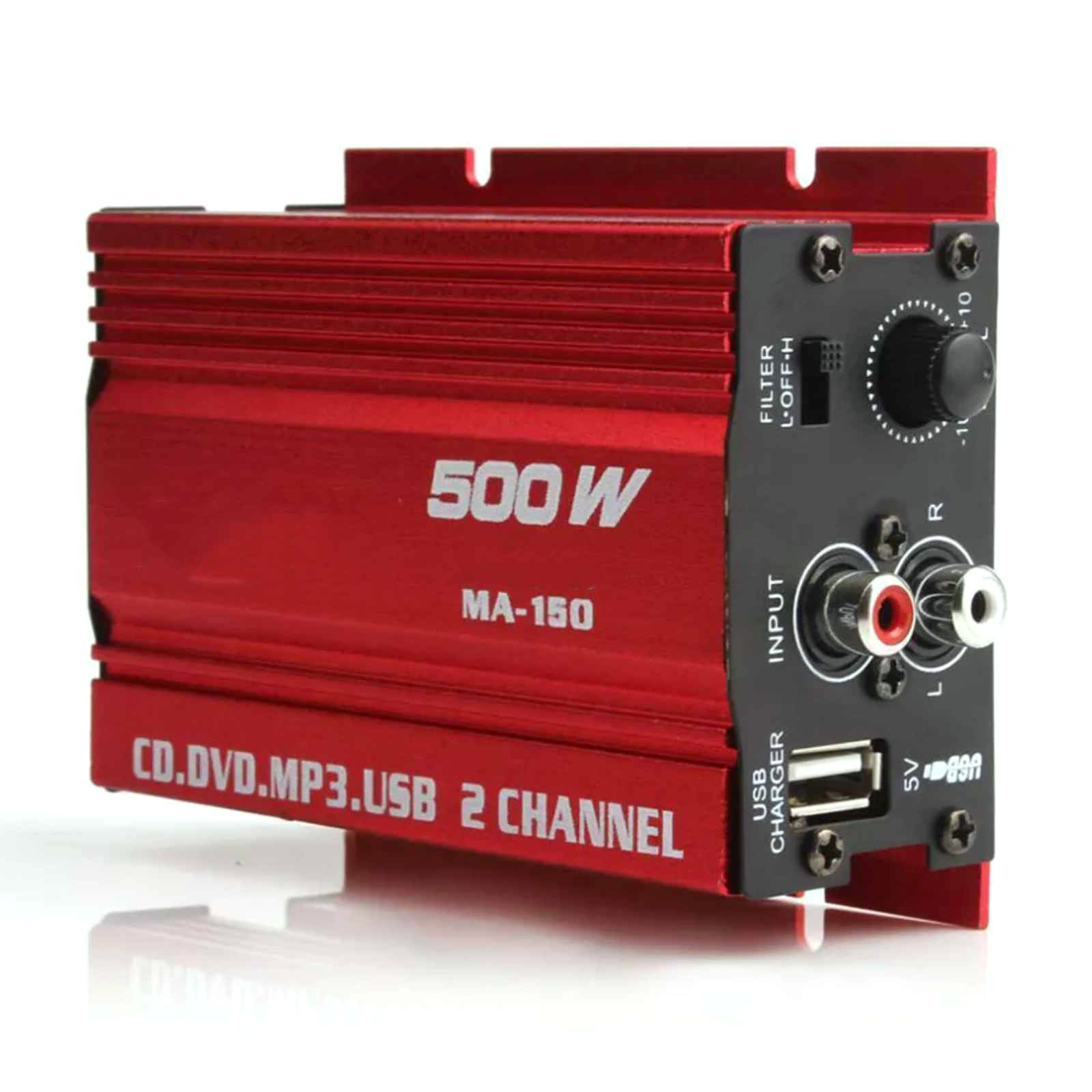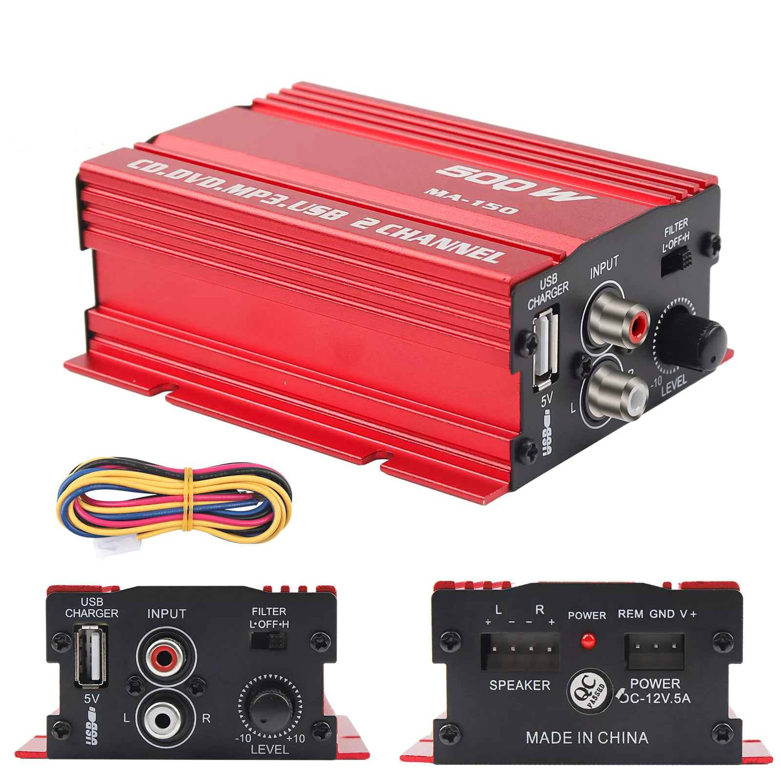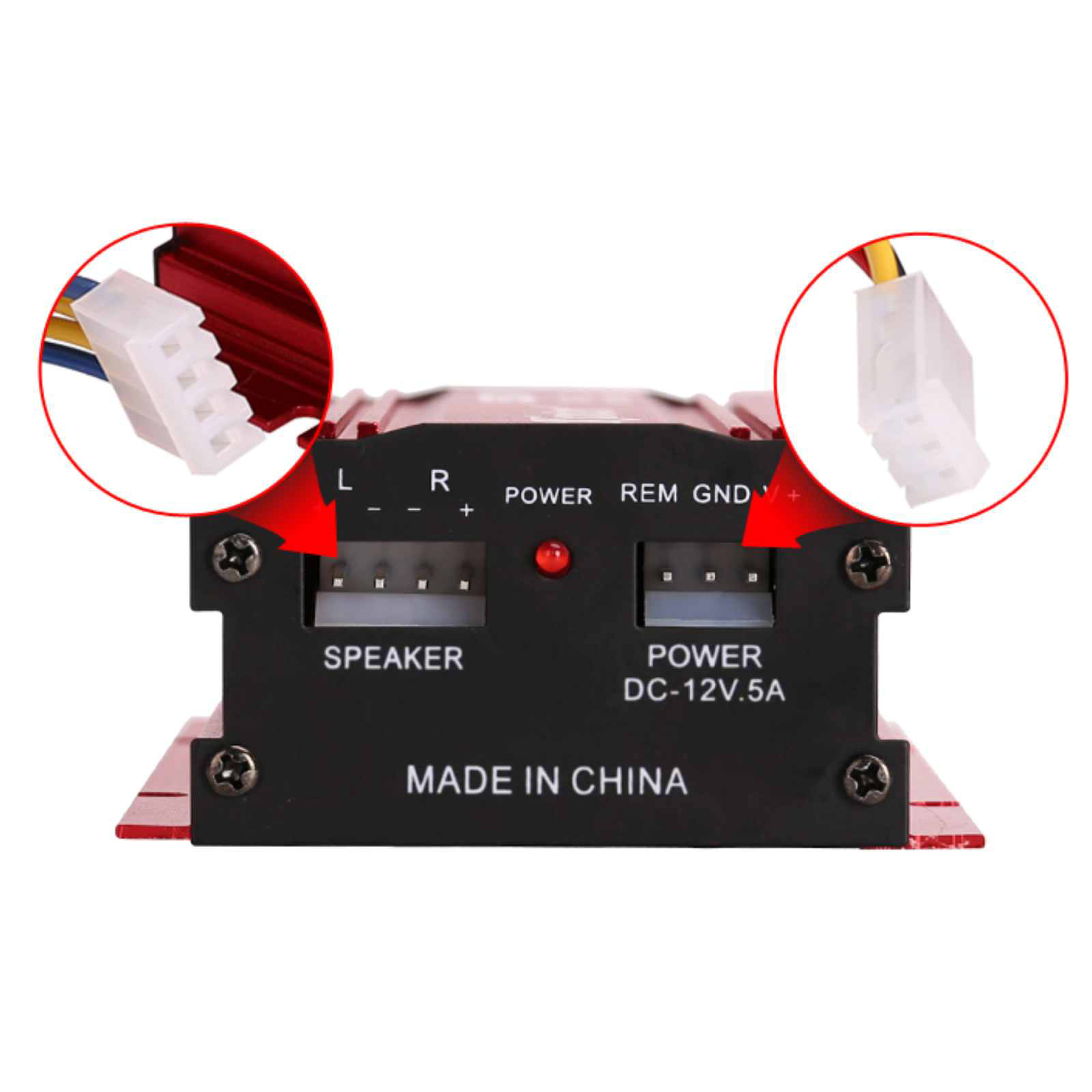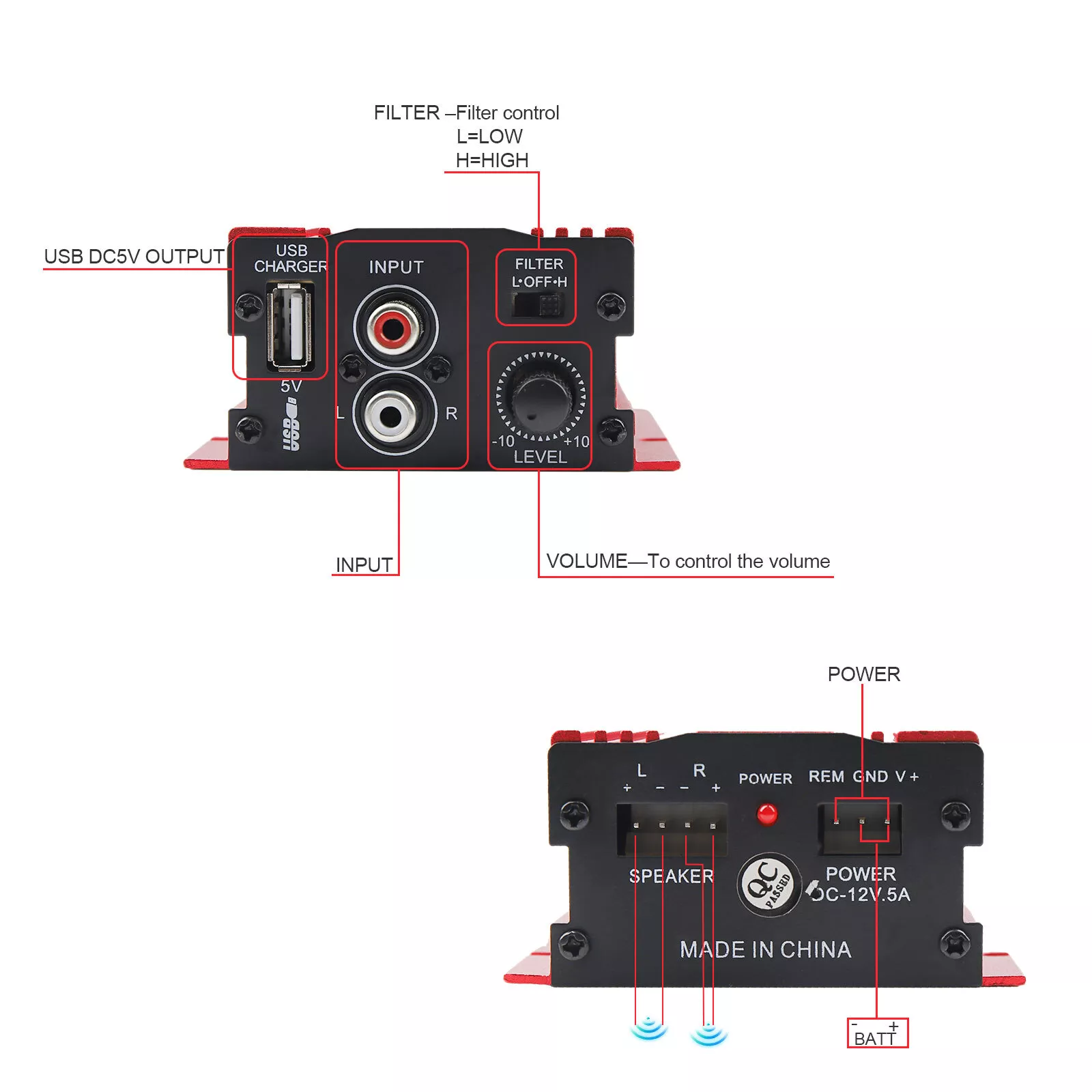 Dual channel mini design: equipped with striking red power LED indicator, L/R speaker interface and DC power jack on the left, clear layout and easy operation.