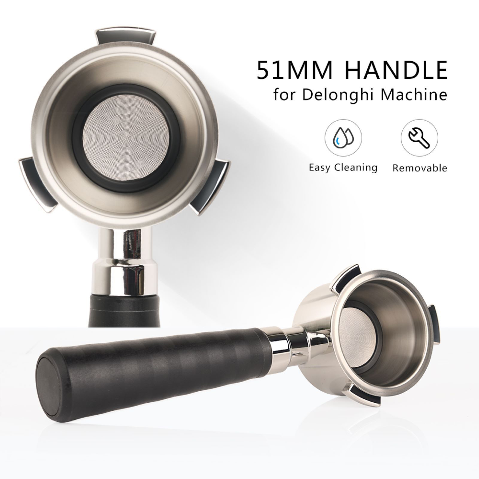 Excellent quality, durable environmental protection: Made of high-quality stainless steel, this coffee machine bottomless filter is not only safe and harmless, but also durable and long service life, is your environmental choice.