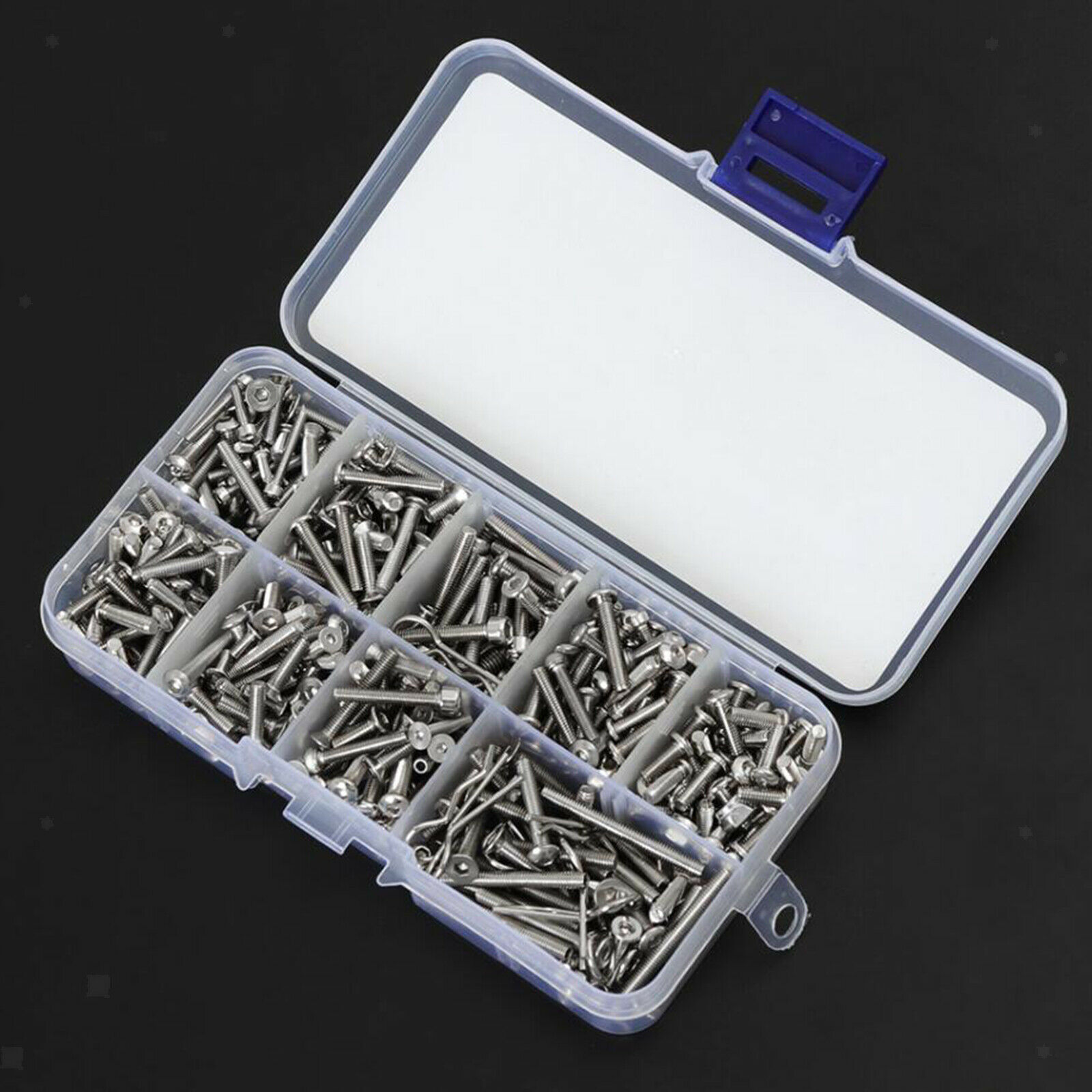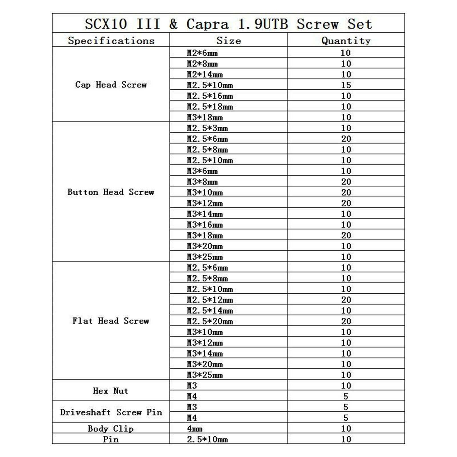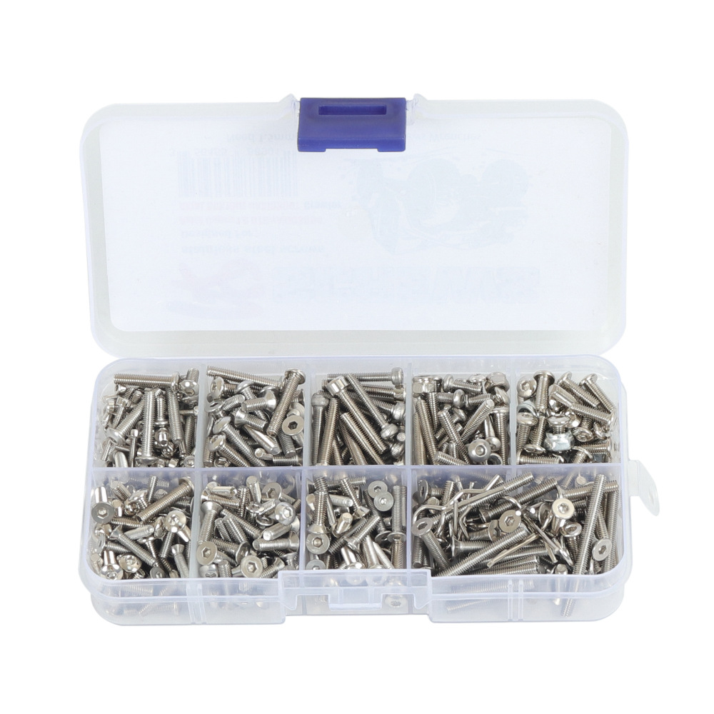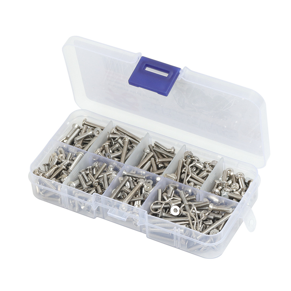 Stainless steel screws set include hex socket cap screws, button head screws, falt heat screws, hex nuts, driveshaft screw pins, baody clips, pins.