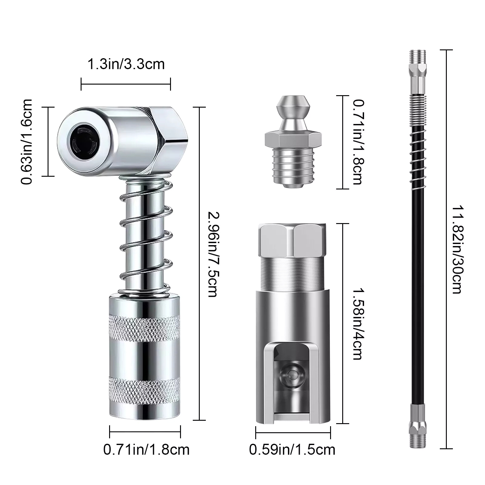 The high-quality, 11.82-inch spring flex hose provides exceptional reach and maneuverability. It stretches and bends to fit any awkward angle or depth, ensuring efficient lubrication of machinery components in tight spots.