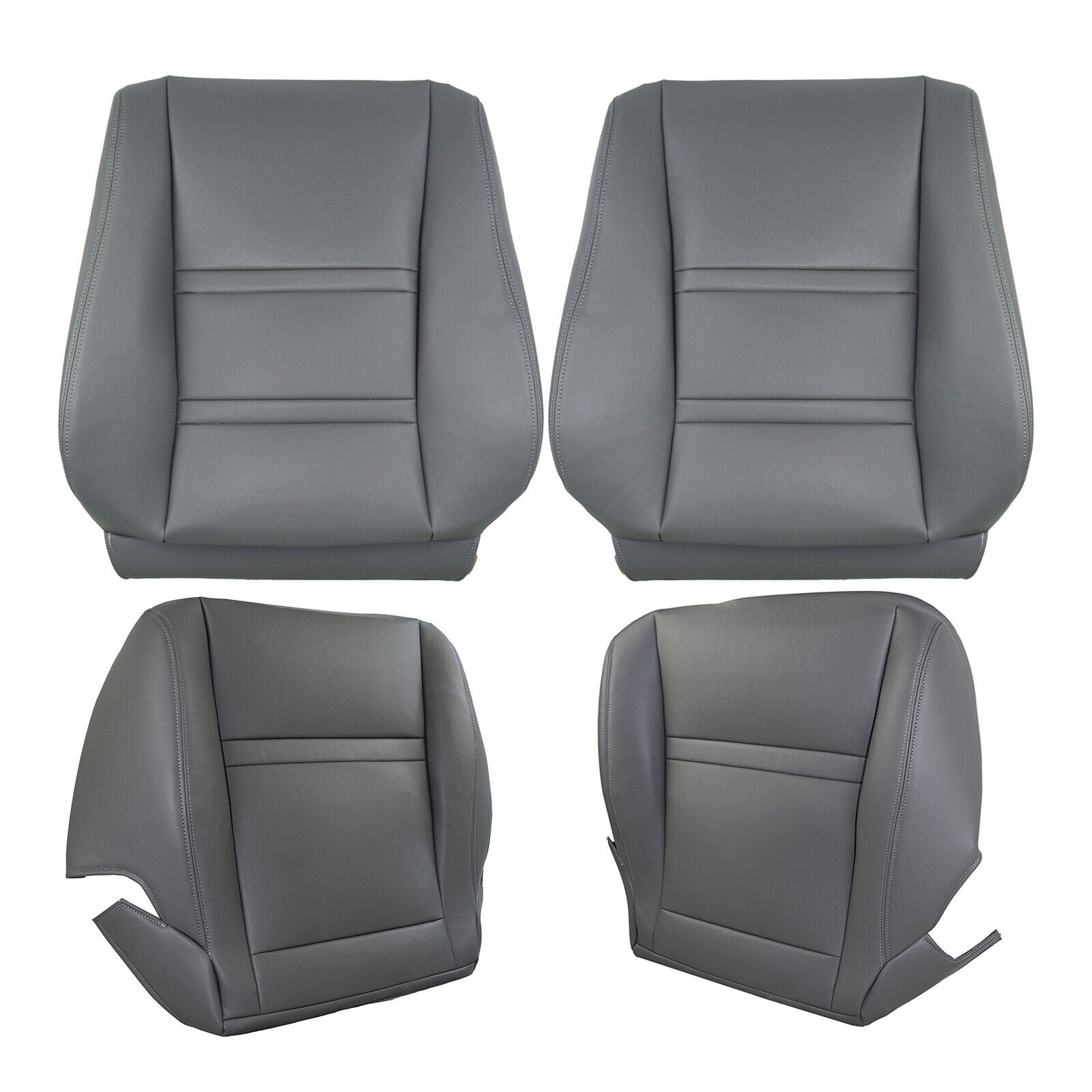 4PCS 1990-1997 For Toyota Land Cruiser Front Driver & Passenger Bottom & Top Seat Covers Leather Gray