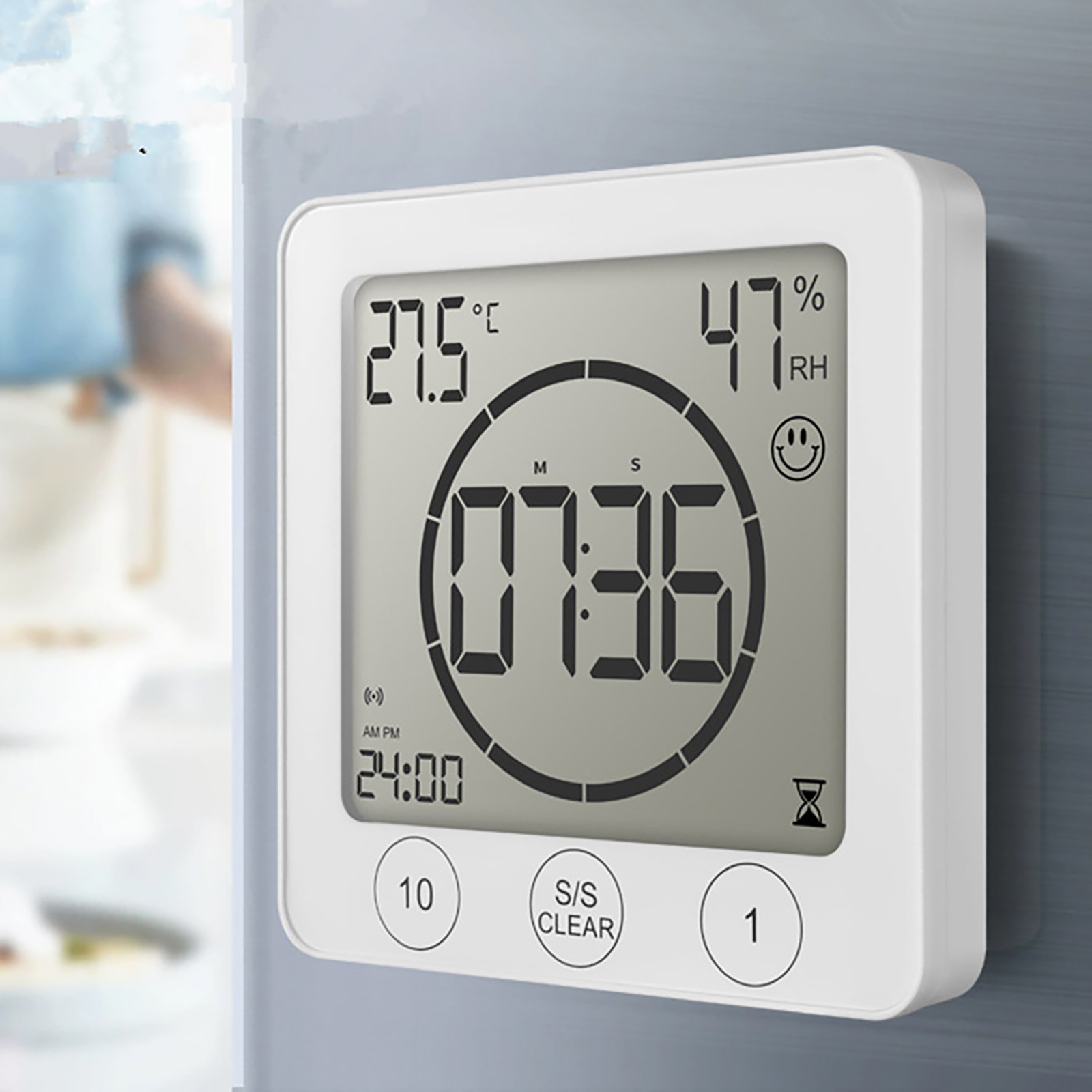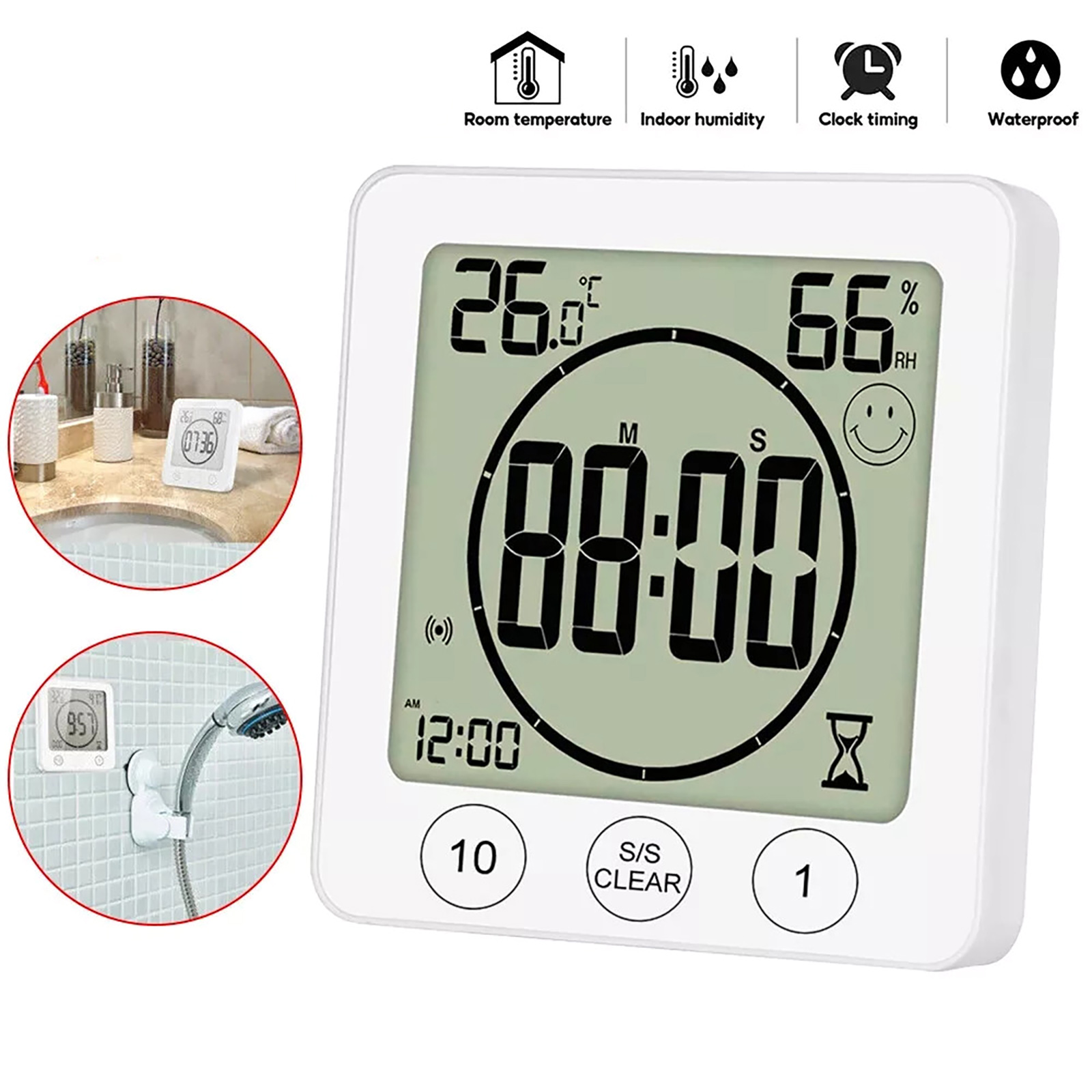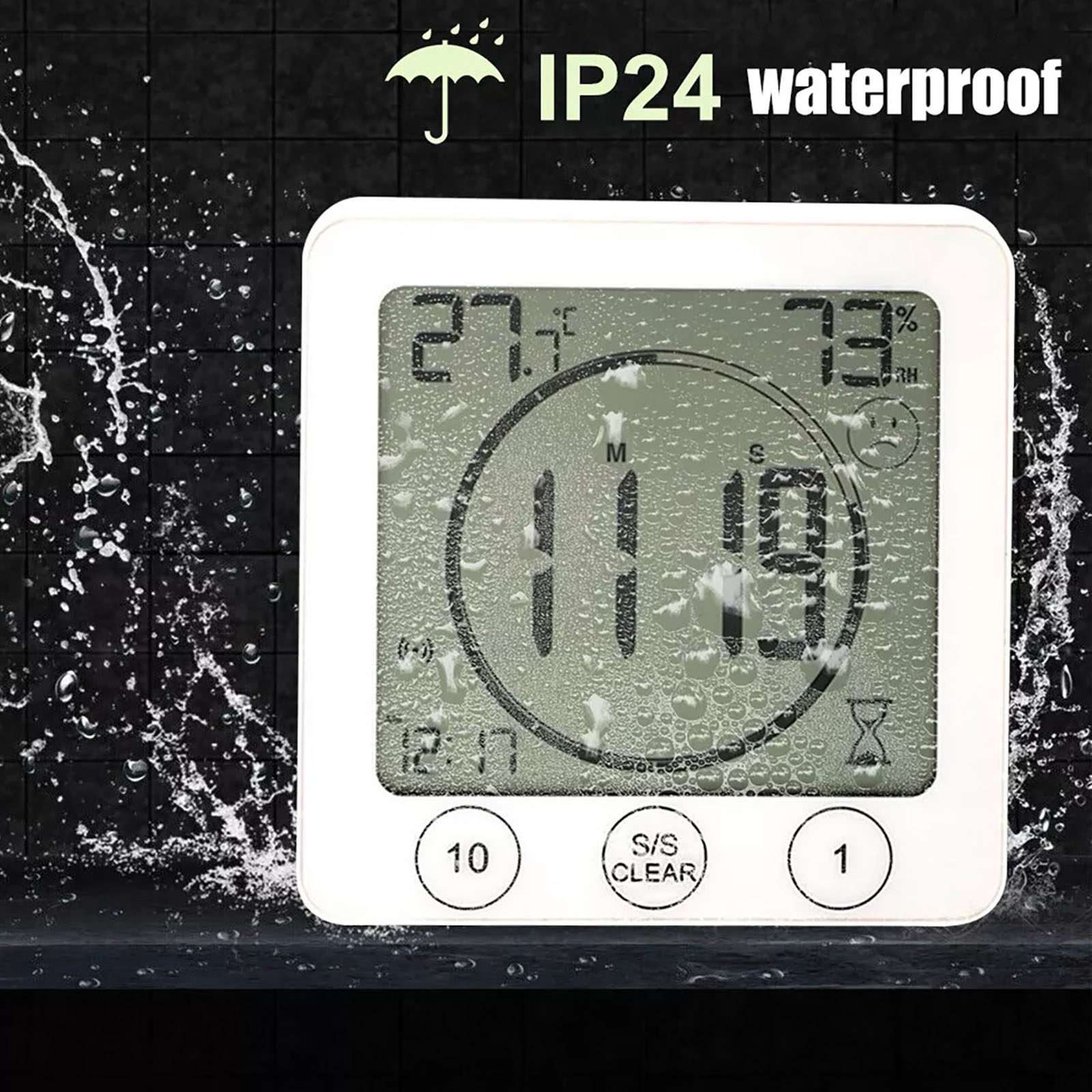 Water spray waterproof-protection from all directions and from finger contact. Suitable for most places and ideal for use in IP24 drip-proof bathrooms, showers and kitchen areas. To take a shower, keep track of time, and save water, it is essential to use it as a clock tower on a bath, washbasin, or kitchen sink. Because of the high sensitivity of the touch screen, do not place the watch's TIMER in front of a heavy water spray. You can enable or disable the clock timer alarm.