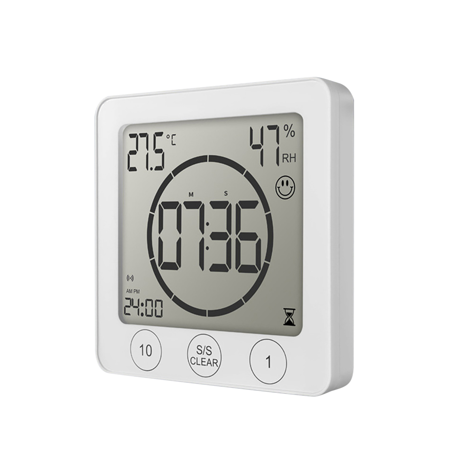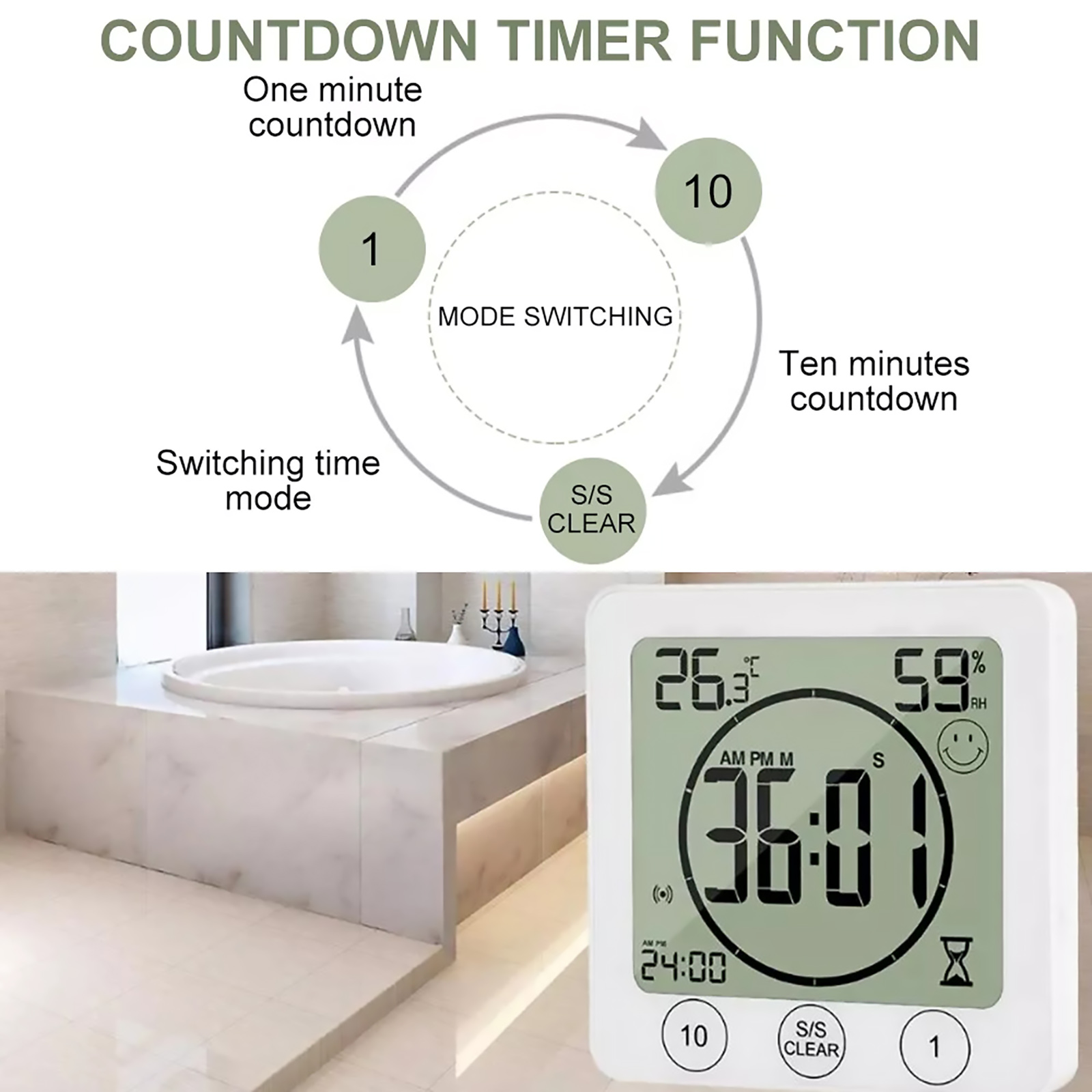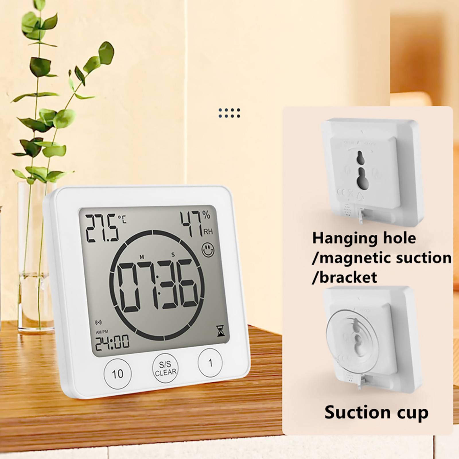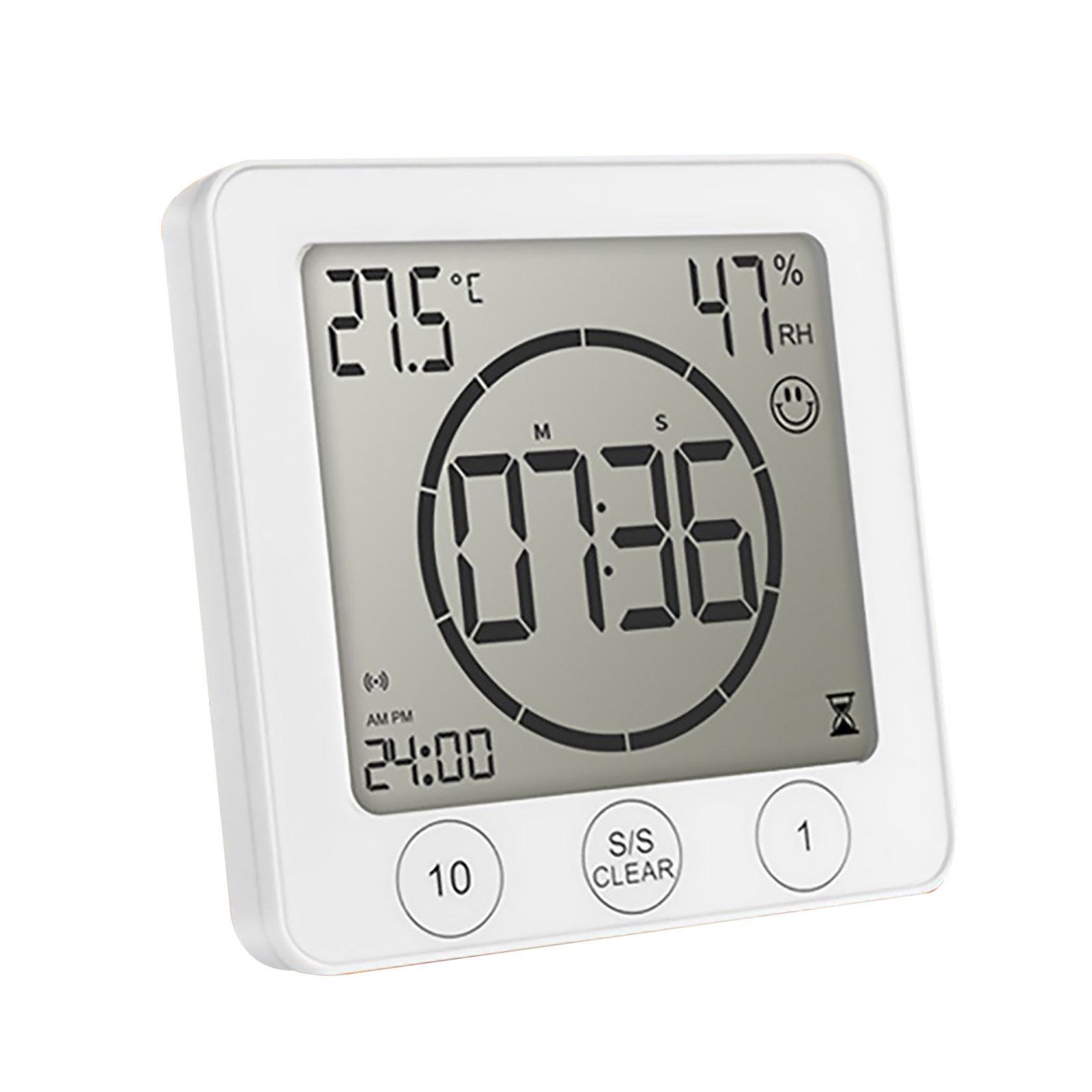 Water spray waterproof-protection from all directions and from finger contact. Suitable for most places and ideal for use in IP24 drip-proof bathrooms, showers and kitchen areas. To take a shower, keep track of time, and save water, it is essential to use it as a clock tower on a bath, washbasin, or kitchen sink. Because of the high sensitivity of the touch screen, do not place the watch's TIMER in front of a heavy water spray. You can enable or disable the clock timer alarm.