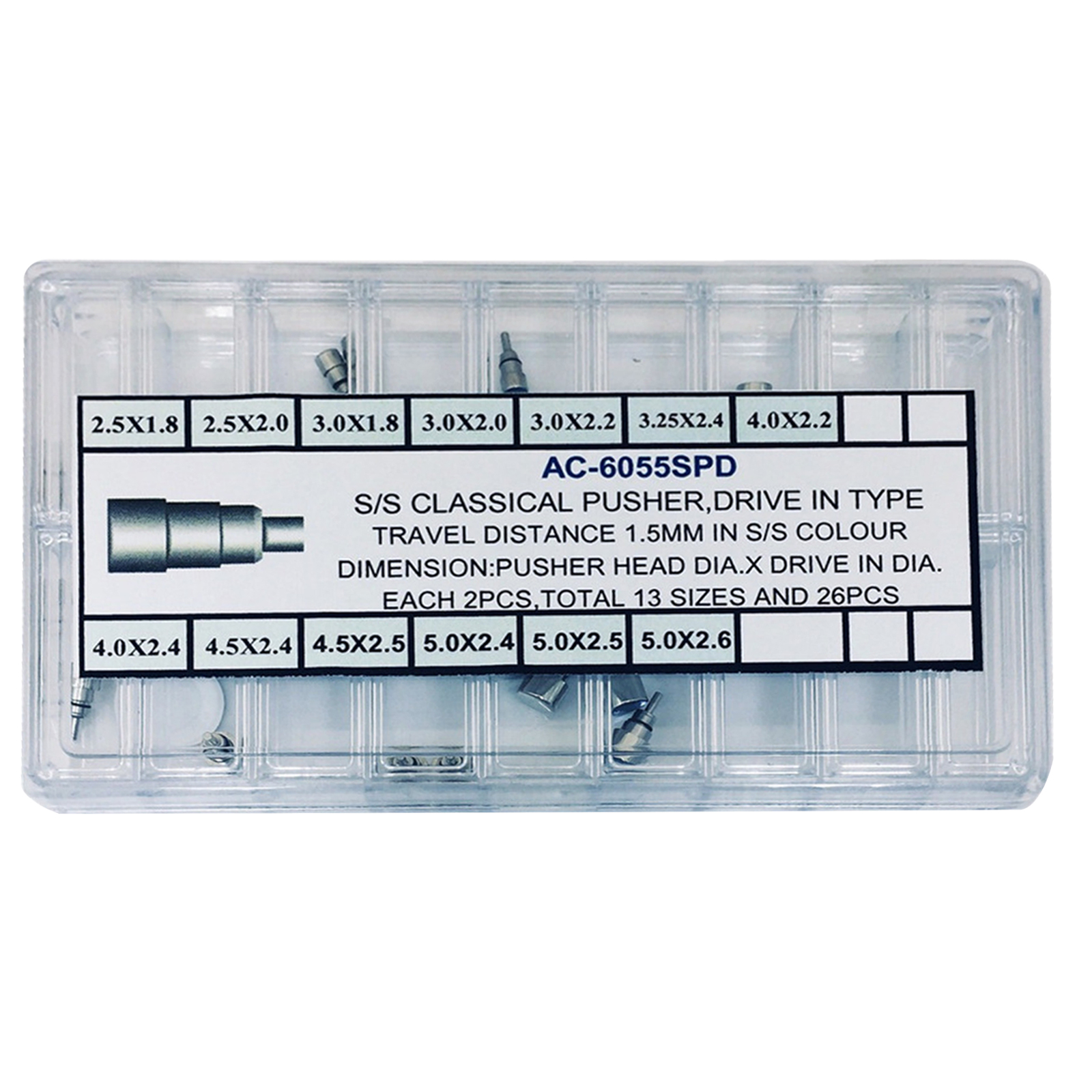 Size: (Pusher Head Diameter* Drive In Diameter) 2.5*1.8, 2.5*2.0, 3.0*1.8, 3.0*2.0, 3.0*2.2, 3.25*2.4, 4.0*2.2, 4.0*2.4, 4.5*2.4, 4.5*2.5, 5.0*2.4, 5.0*2.5, 5.0*2.6