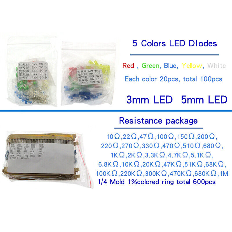 Assorted kit of 100pcs LED: