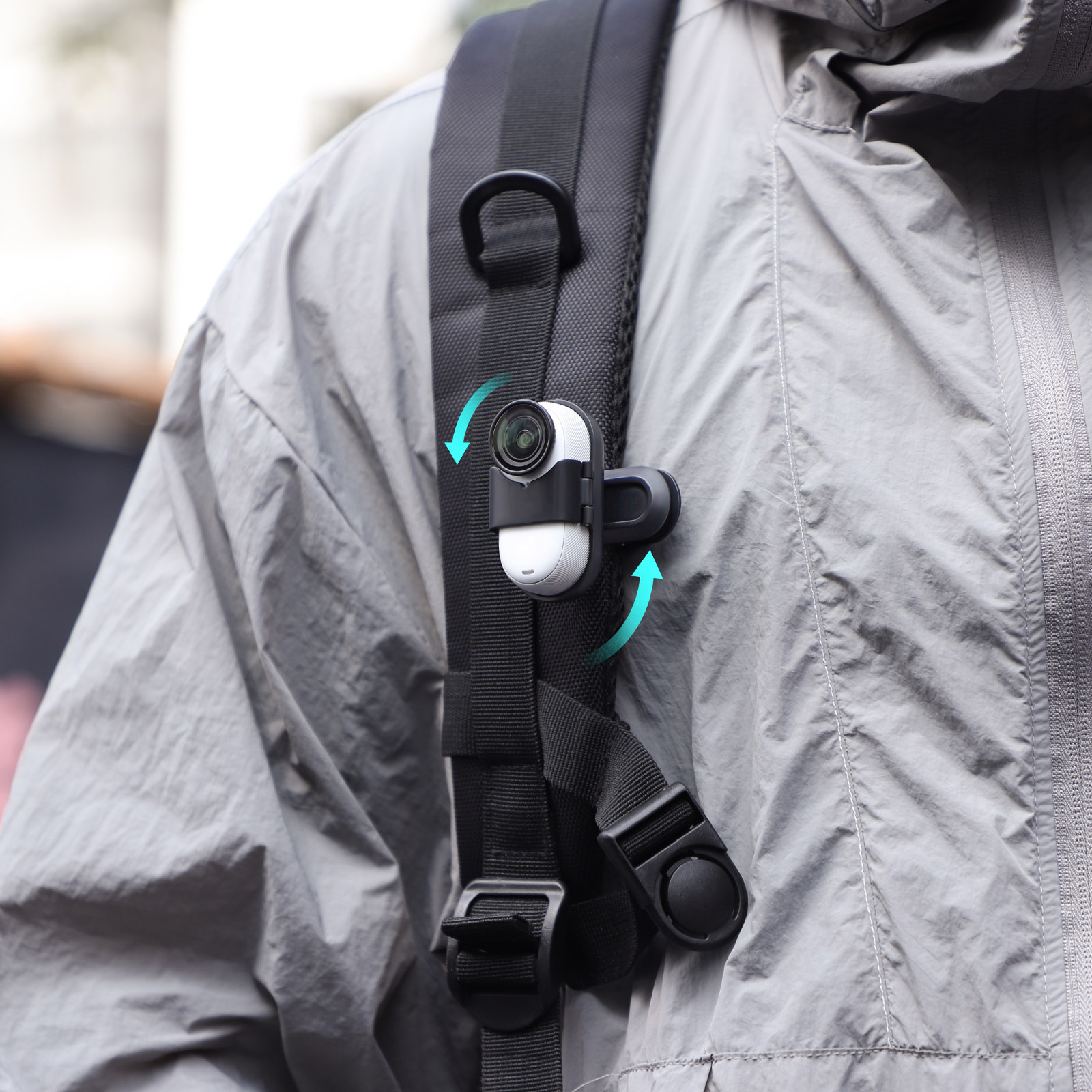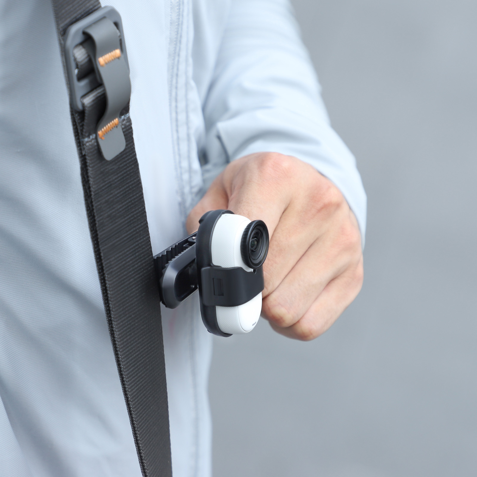 Quick to Use, Just insert into the backpack strap to use. It can be removed directly after shooting, which is very convenient.